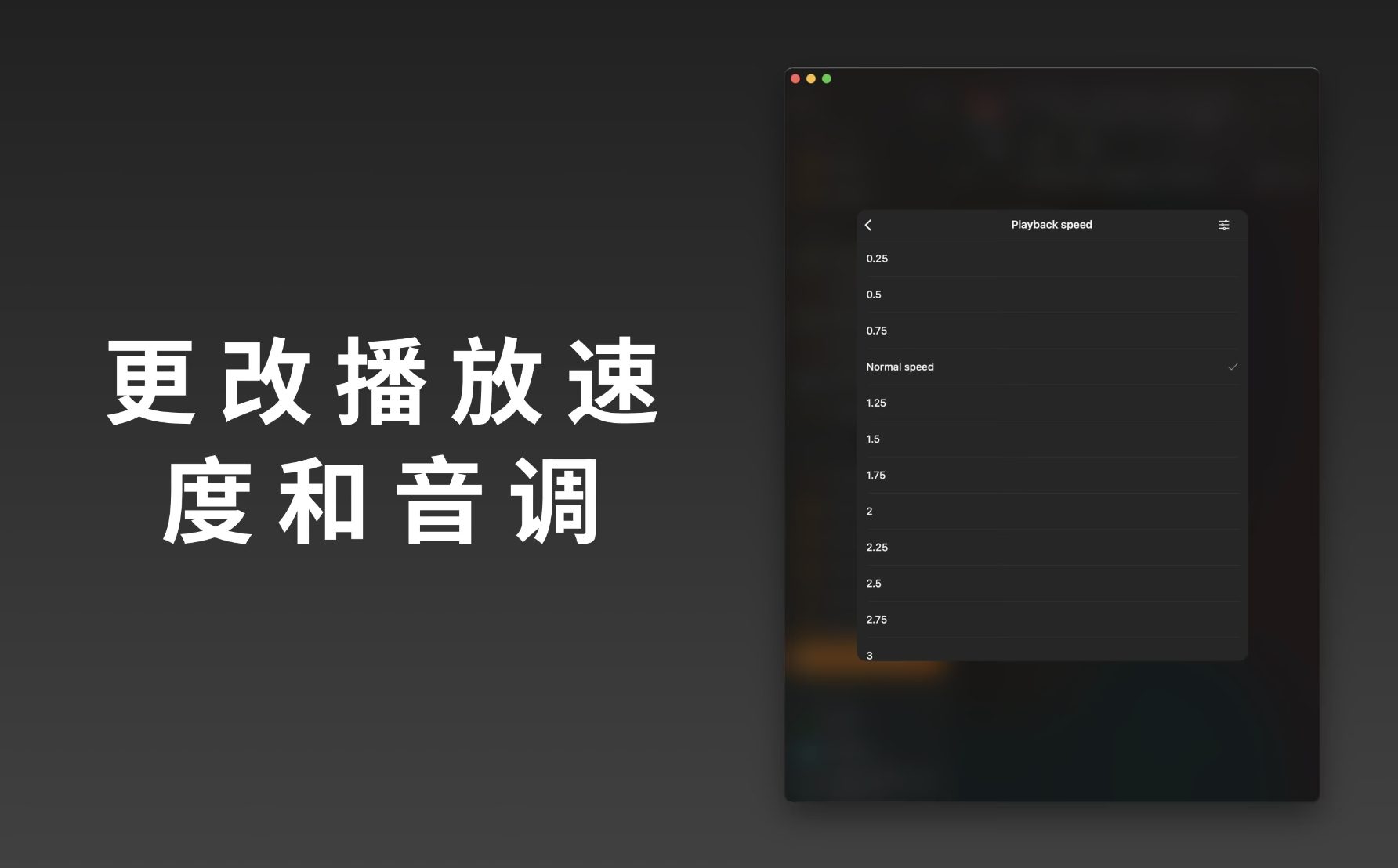 • 音高校正±12半音、播放速度控制(0.5x-2.0x)