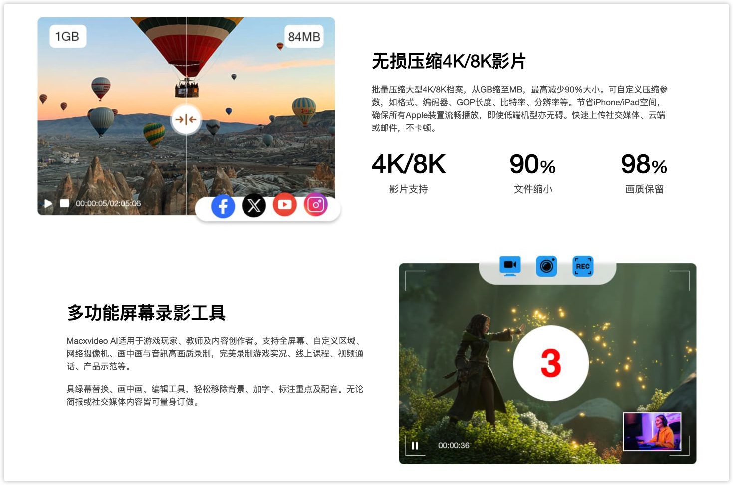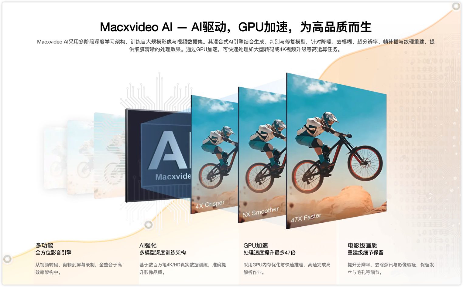 ✨ 在Mac视频处理领域,Macxvideo AI堪称革命性的一站式解决方案!这款AI驱动的全能工具箱集视频增强、格式转换、智能压缩、屏幕录制与精细编辑于一体,彻底解决多格式兼容与高清画质处理的痛点。其杀手锏在于✨AI超分辨率技术——能将低清素材智能放大4倍,即使在4K输出下也能精准消除噪点模糊、保留丰富细节,带来影院级沉浸体验。更令人惊叹的是其🚀47倍GPU加速引擎,让批量处理4K/8K/3D视频时CPU占用率极低,效率碾压传统工具,成为从业余创作者到专业影视工作者的生产力倍增器!