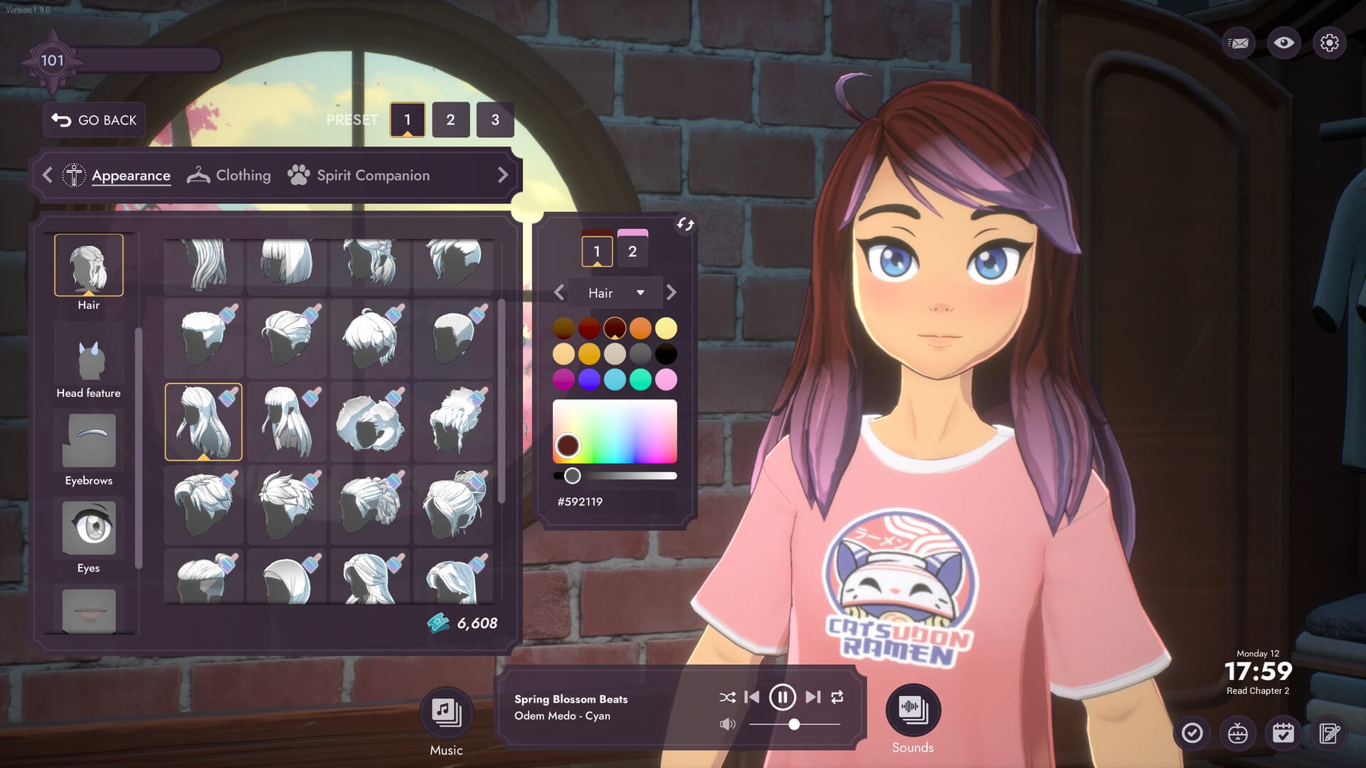 温柔、舒缓的 Lofi 音乐和动态声景(譬如淅淅沥沥的雨声和噼啪作响的火焰)提供了完美的背景氛围,帮助人们缓解压力和放松身心。 游戏中的所有音乐均由 Homework Radio 提供,完全支持直播,非常适合在 YouTube 或 Twitch 上用作背景音乐。