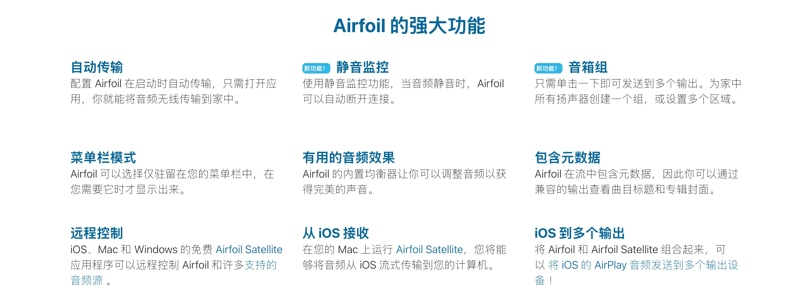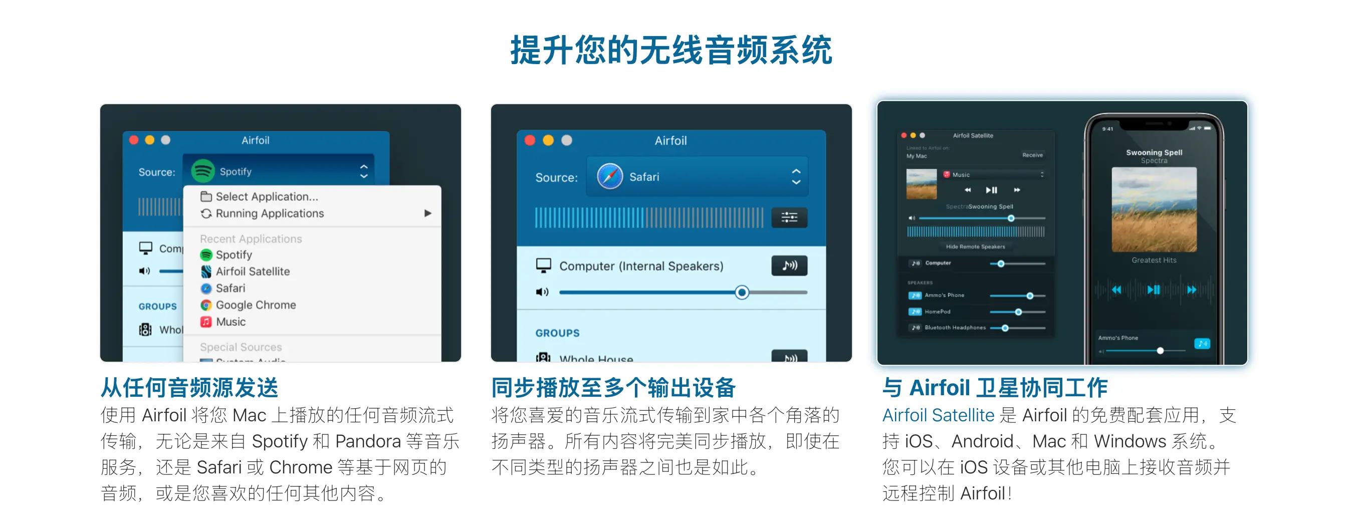 • 🌐 跨平台控制: 通过Airfoil Satellite应用,可用iOS/Android设备远程控制Mac音频源与输出设备切换。