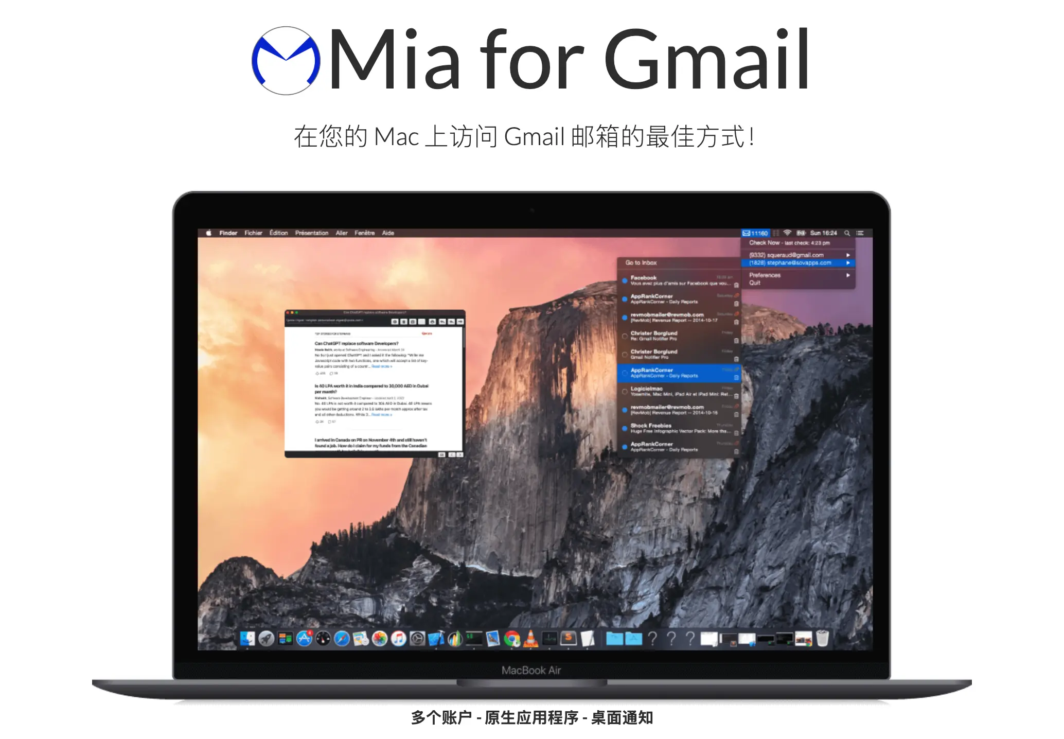 Mia for Gmail 是一款专为macOS设计的菜单栏Gmail客户端,它通过原生应用形式提供了比网页版更便捷、高效的邮件管理体验,尤其支持多账户统一管理与实时桌面通知,让用户无需浏览器即可快速处理邮件,大幅提升工作效率。