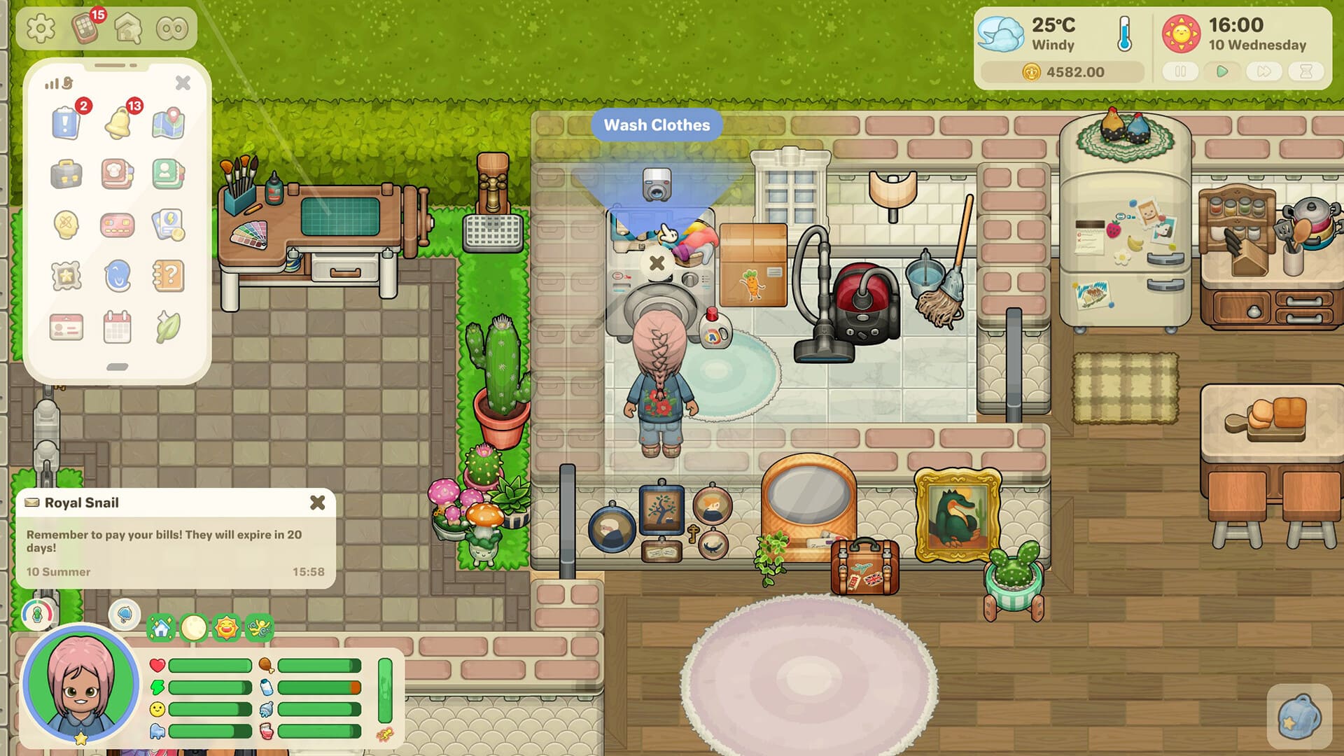 别忘了你的小小角色也会感到困倦和口渴,所以在你度过一天的过程中,一定要满足自己的需求