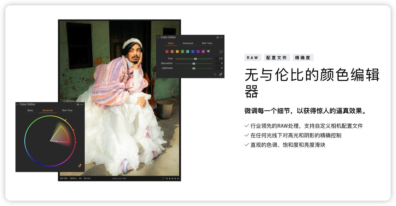 • 🎯 顶尖RAW转换引擎: 深度解析相机原始数据,呈现无损画质细节与精准色彩过渡,尤其在阴影/高光恢复上表现卓越。