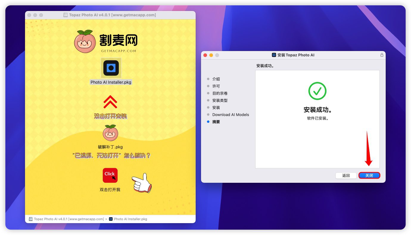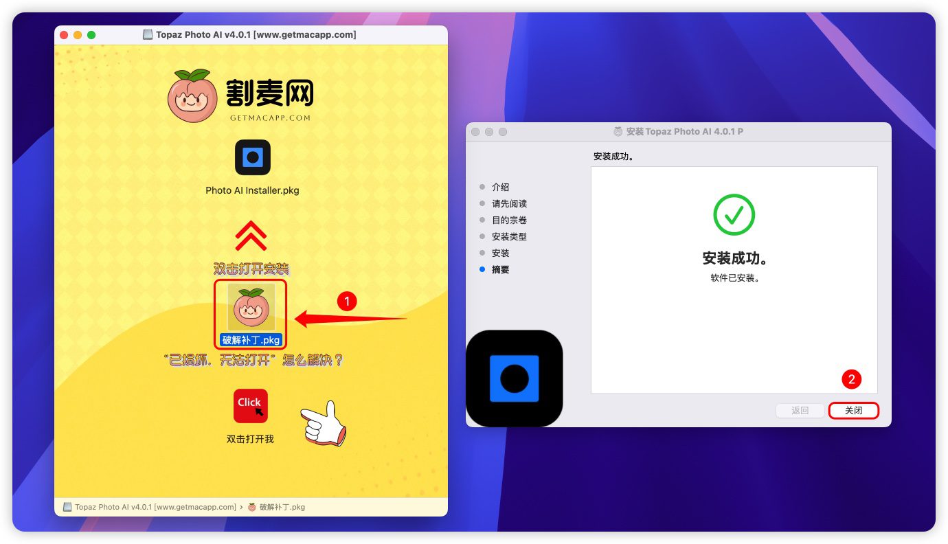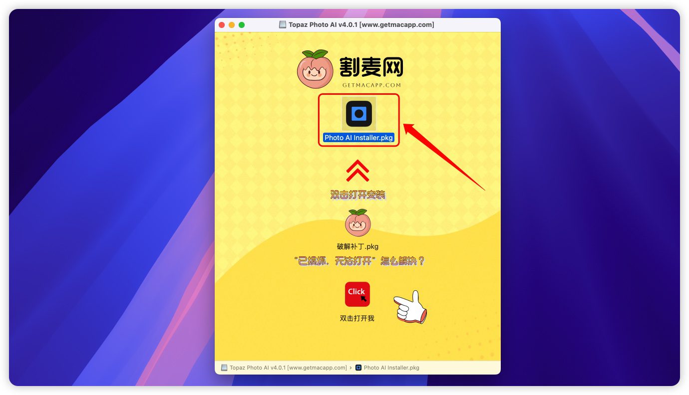 双击镜像包内的.pkg文件,按照安装引导起进行安装即可