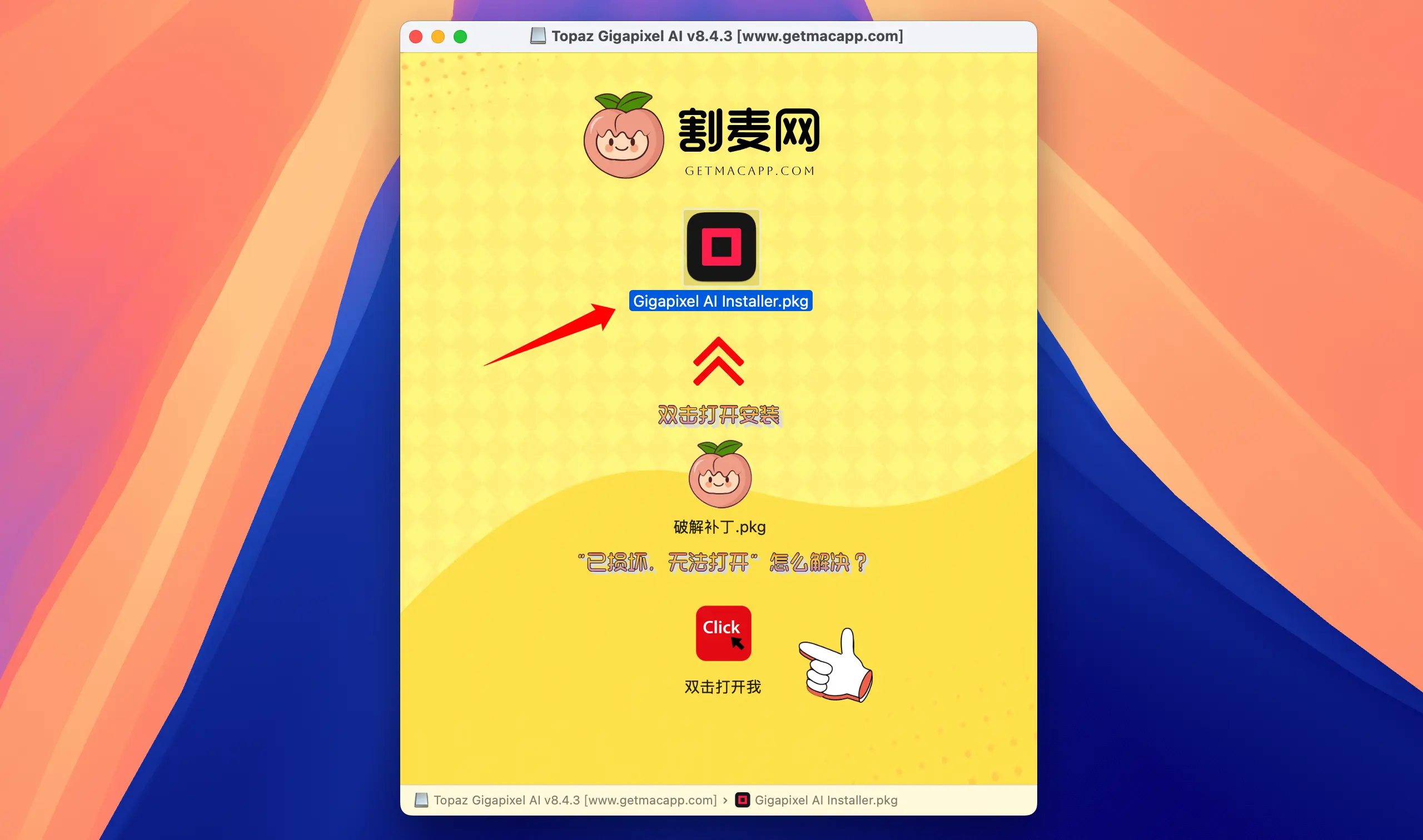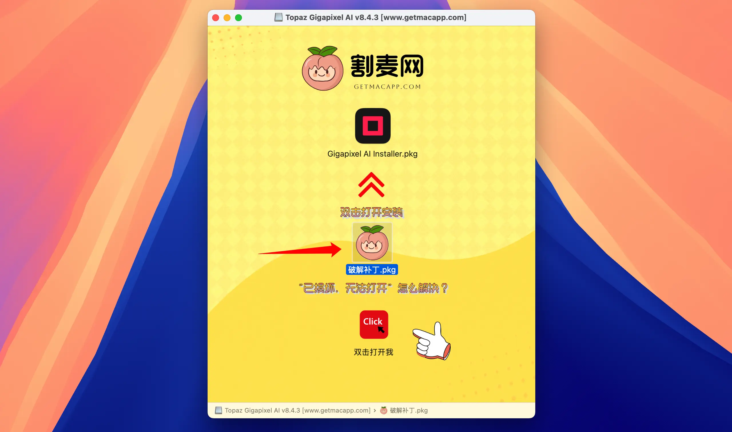 2.安装完Topaz Gigapixel AI ,双击安装 破解补丁.pkg进行激活