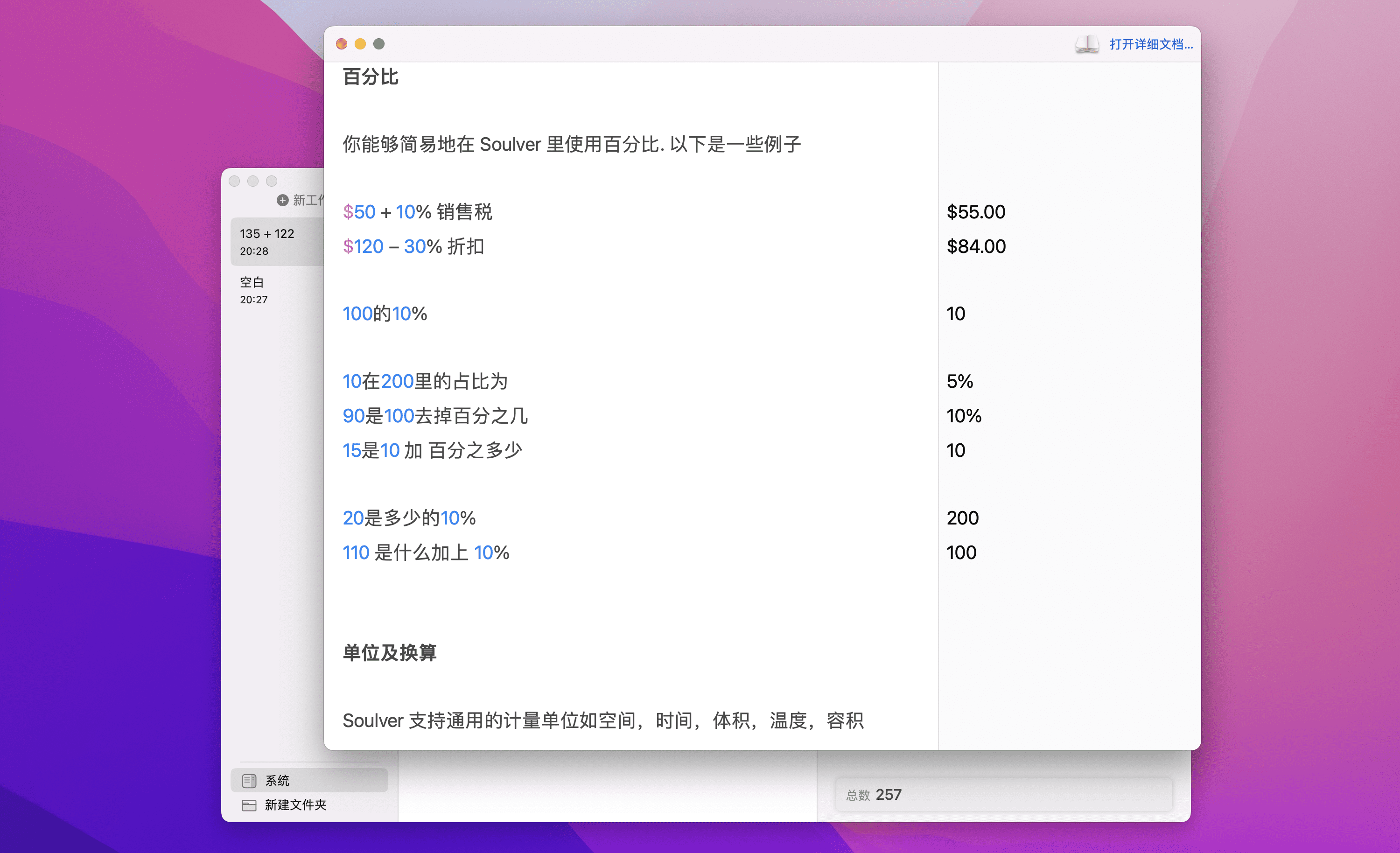 在Mac软件生态中,Soulver 3 是一款颠覆传统的智能文本计算器,它巧妙融合了记事本的自由书写与计算器的强大处理能力。不同于传统计算器或复杂的电子表格,它允许你像在纸上一样,随心所欲地混合文字、数字和计算,并即时呈现结果。这款工具通过其自然语言理解和直观交互,显著提升了日常数字处理的效率与清晰度,尤其适合需要频繁进行杂项计算、单位换算或财务估算的用户。