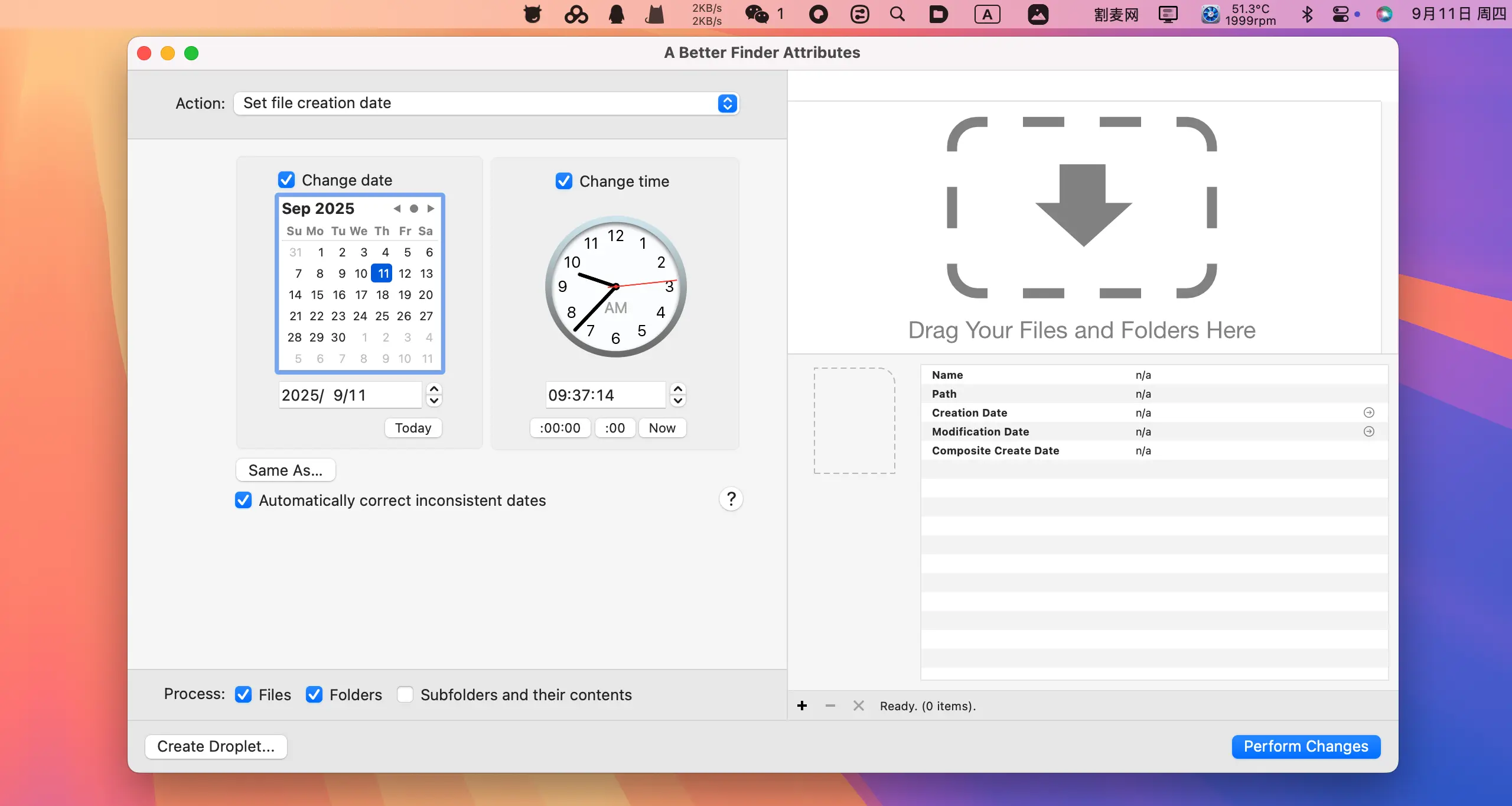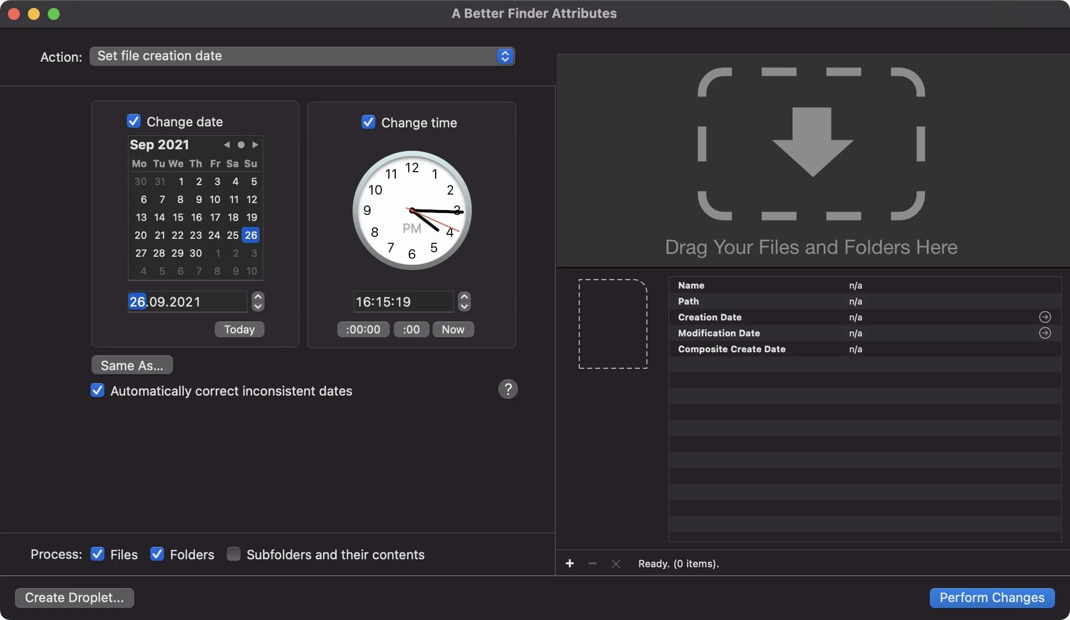 • 📅 全面日期控制可批量修改文件的创建日期、修改日期和访问日期。支持将文件日期与JPEG、RAW等格式的EXIF拍摄日期同步,确保文件在Finder中正确排序。还可通过添加或删除时间来批量调整时间戳,有效修正相机时钟设置错误或补偿时区变化带来的问题。