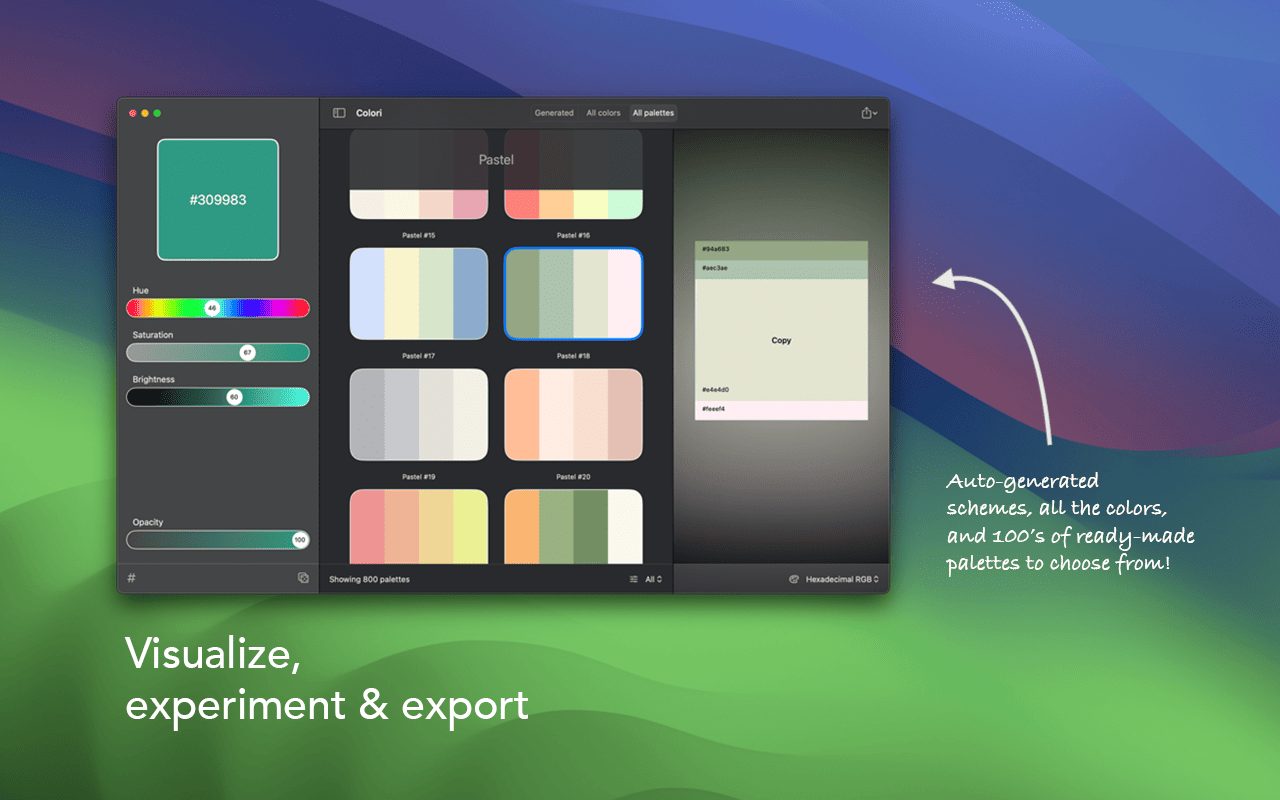 🎨 Colori 是一款专为设计师和开发人员打造的专业级色彩管理工具,它重新定义了数字色彩工作的流程标准。这款Mac颜色设计软件提供丰富的调色工具和代码转换功能,让用户能够轻松探索、创建和管理色彩方案,并直接转换为各种程序代码格式,极大地提升了设计到开发的工作效率。