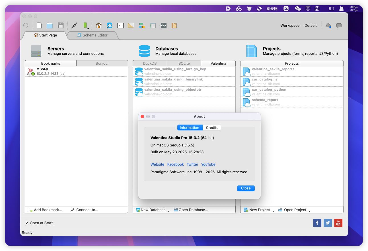 Valentina Studio Pro是一款专业级跨平台数据库管理神器💻,深度适配macOS系统,无缝支持MySQL、MariaDB、SQL Server等六大主流数据库。其核心优势在于为Mac用户提供企业级数据解决方案——通过直观的ER图表设计、智能SQL差异对比和可视化报表工具,将复杂的数据库操作简化为拖拽操作,特别适合Mac开发者高效管理关键业务数据🚀。