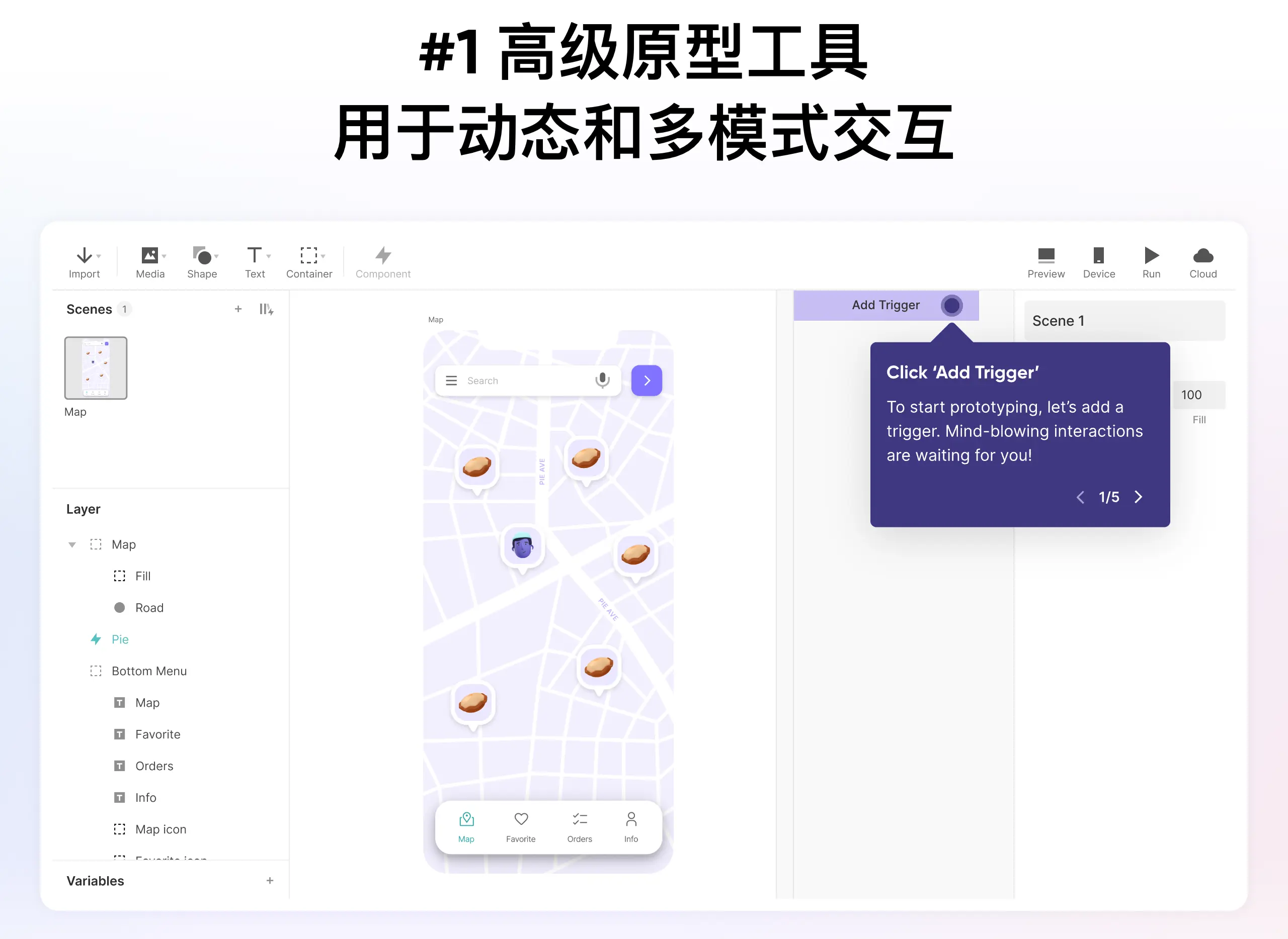 ProtoPie 是一款专业的Mac高保真交互原型工具,通过创新的无代码交互设计模式彻底改变了传统原型制作流程。它采用直观的"触发+反应+对象"交互模型,支持从基础页面跳转到复杂的传感器交互,让设计师能够像说话一样自然地构建交互逻辑。这款Mac高保真交互原型工具支持Windows和Mac双平台,提供实时设备预览和云端协作功能,成为UX设计师、产品经理和开发者的全流程设计解决方案。
