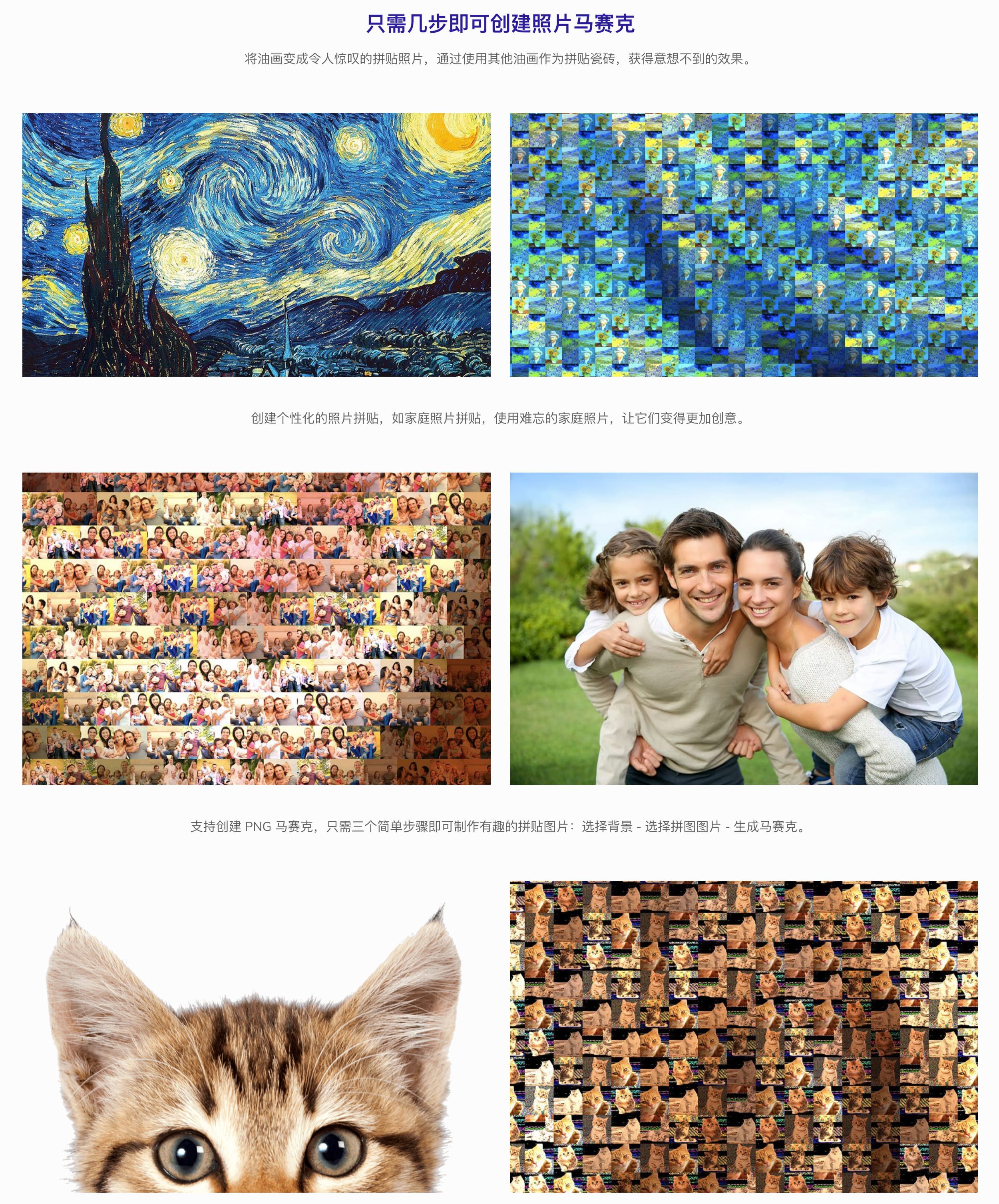🔄 多格式兼容:支持JPEG和PNG格式作为源图片和马赛克单元,保证图像质量不受损。 -