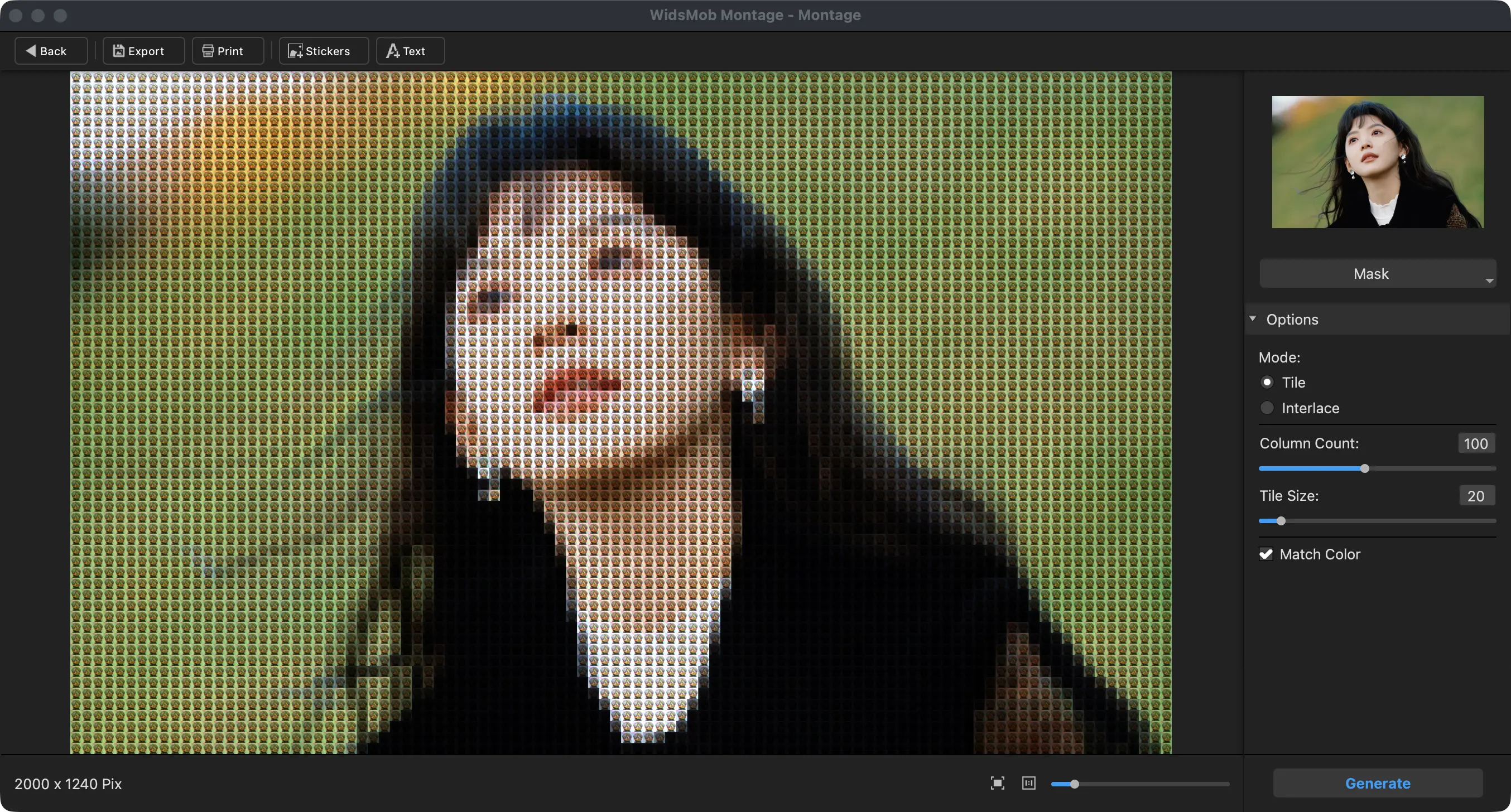 WidsMob Montage 是一款创意十足的Mac蒙太奇制作软件,能够将普通照片转换为令人惊叹的马赛克艺术画作。它通过智能算法将数千张小照片拼接成一张大图,支持多种蒙太奇类型和自定义形状模板。这款Mac蒙太奇制作软件操作简单却功能强大,无需专业设计技能即可创作出独特的拼贴作品,是活动策划者、摄影爱好者和艺术创作者的理想创意工具。
