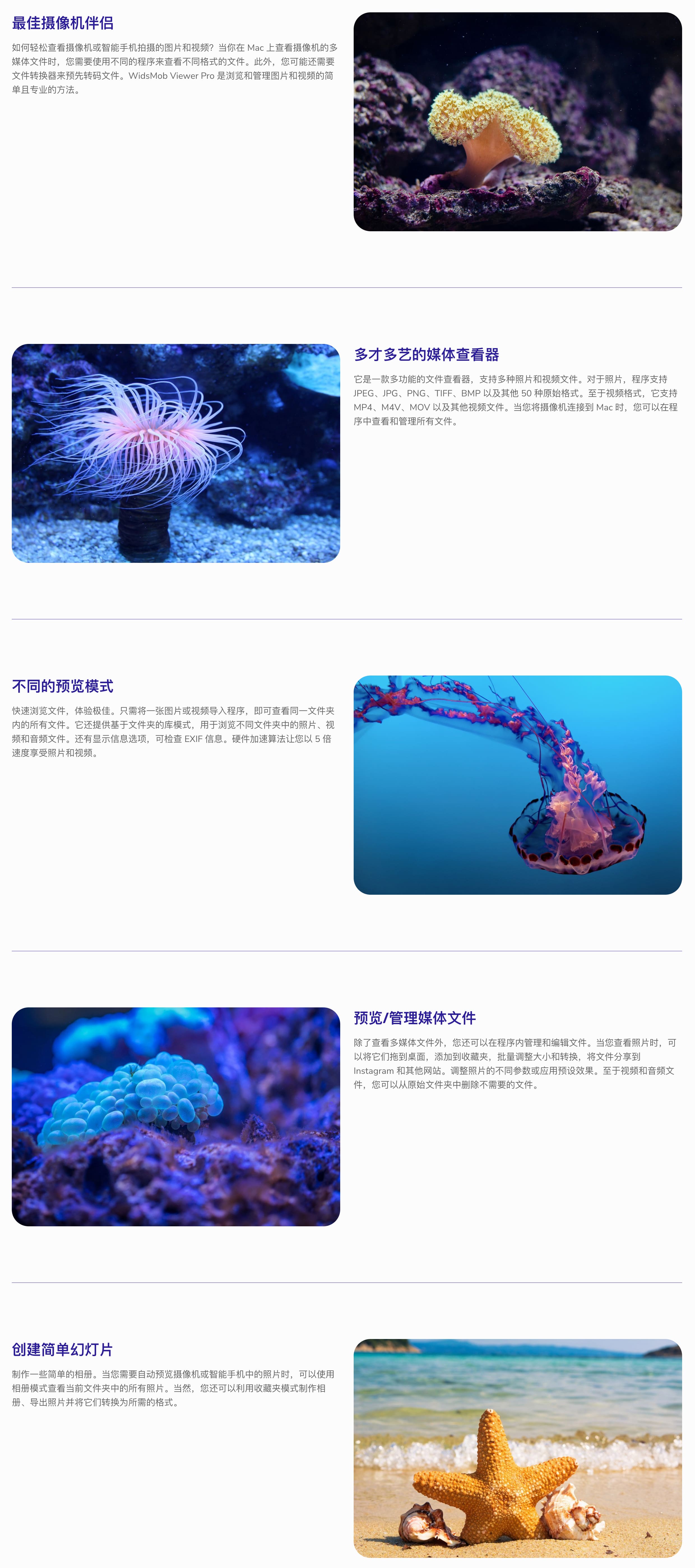 WidsMob Viewer Pro for Mac适用于多种媒体管理场景。专业摄影师可以利用这款Mac媒体查看管理软件快速浏览和筛选拍摄的RAW格式照片,进行初步的选片工作;摄影爱好者能够管理日益增长的照片库,通过标签和评分系统组织个人作品;普通用户则可以用它来查看和管理家庭照片和视频,创建回忆收藏集。无论是个人使用还是专业工作流程,这款Mac媒体查看管理软件都能提供高效、便捷的媒体文件管理体验。