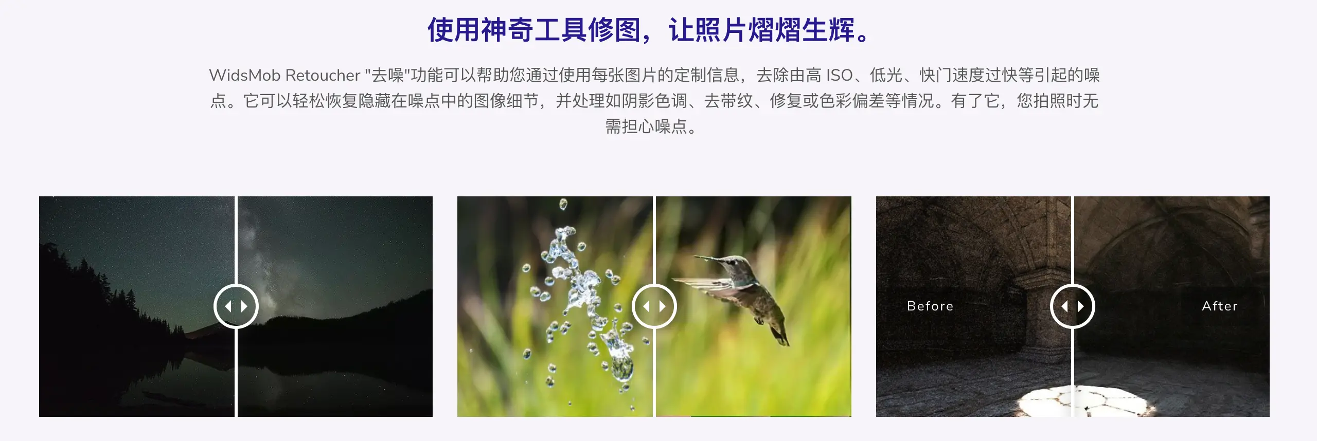 WidsMob AI Retoucher 是一款革命性的AI智能照片编辑软件,通过人工智能技术重新定义图像处理体验。这款软件集智能增强、人像优化和艺术效果于一身,能够自动识别图像内容并应用最合适的编辑参数。与传统手动编辑软件不同,这款AI智能照片编辑软件通过学习算法实现一键专业级修图,让普通用户也能轻松获得令人惊艳的视觉效果,大幅提升照片后期处理效率。