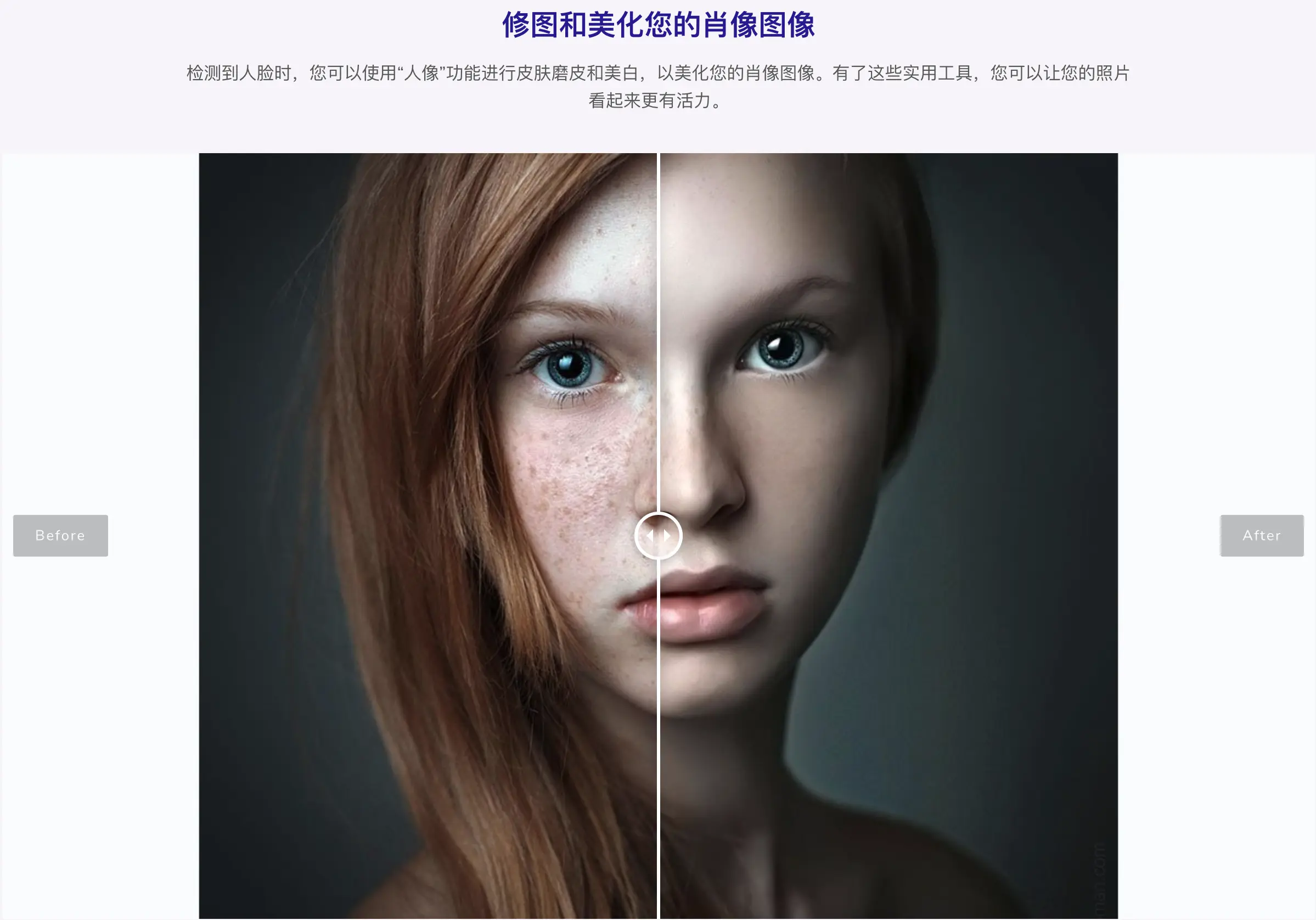 人像照片优化:自动检测并美化人像照片,提供自然的美肤效果和五官增强,适合肖像摄影和社交媒体分享。 -