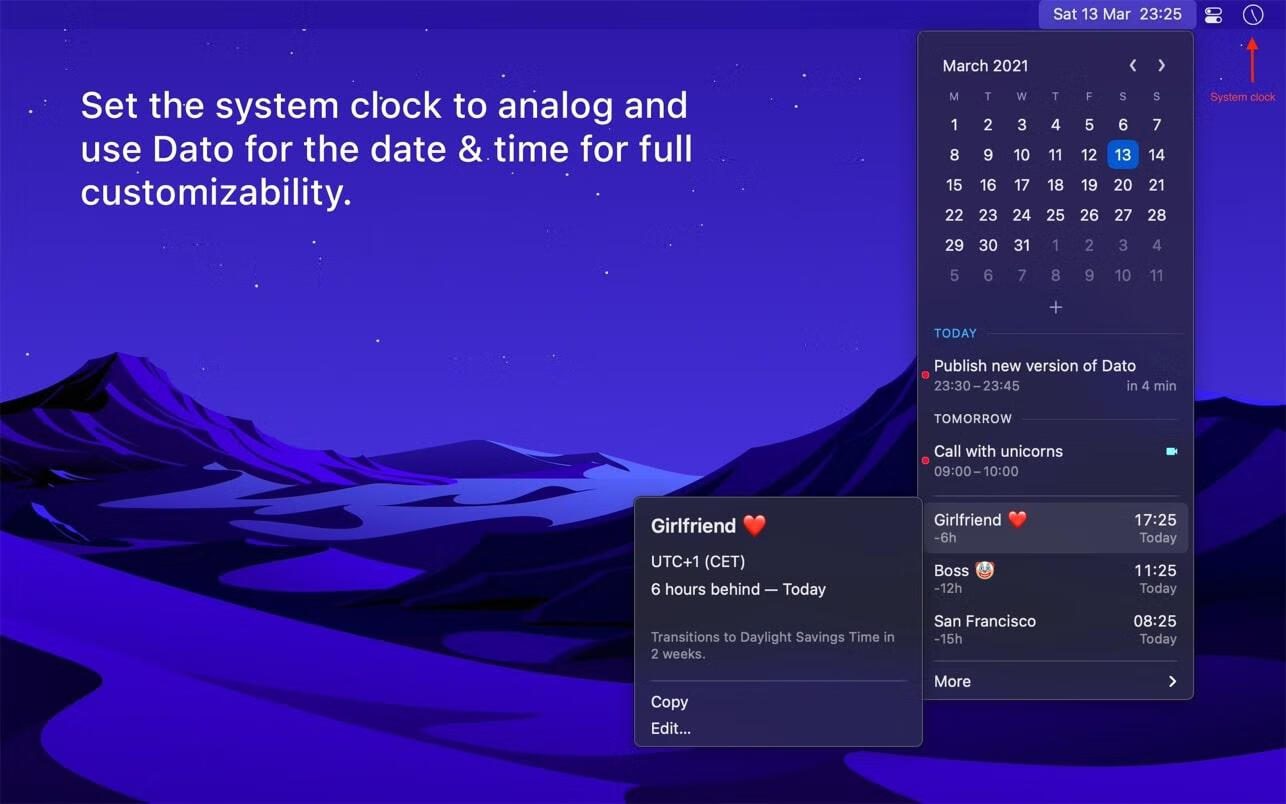 💡冷知识: 时区显示支持「半时区」地区(如印度UTC+5:30)!Dato的菜单栏日历应用可精准计算尼泊尔、伊朗等特殊时区,跨国日程管理零误差。