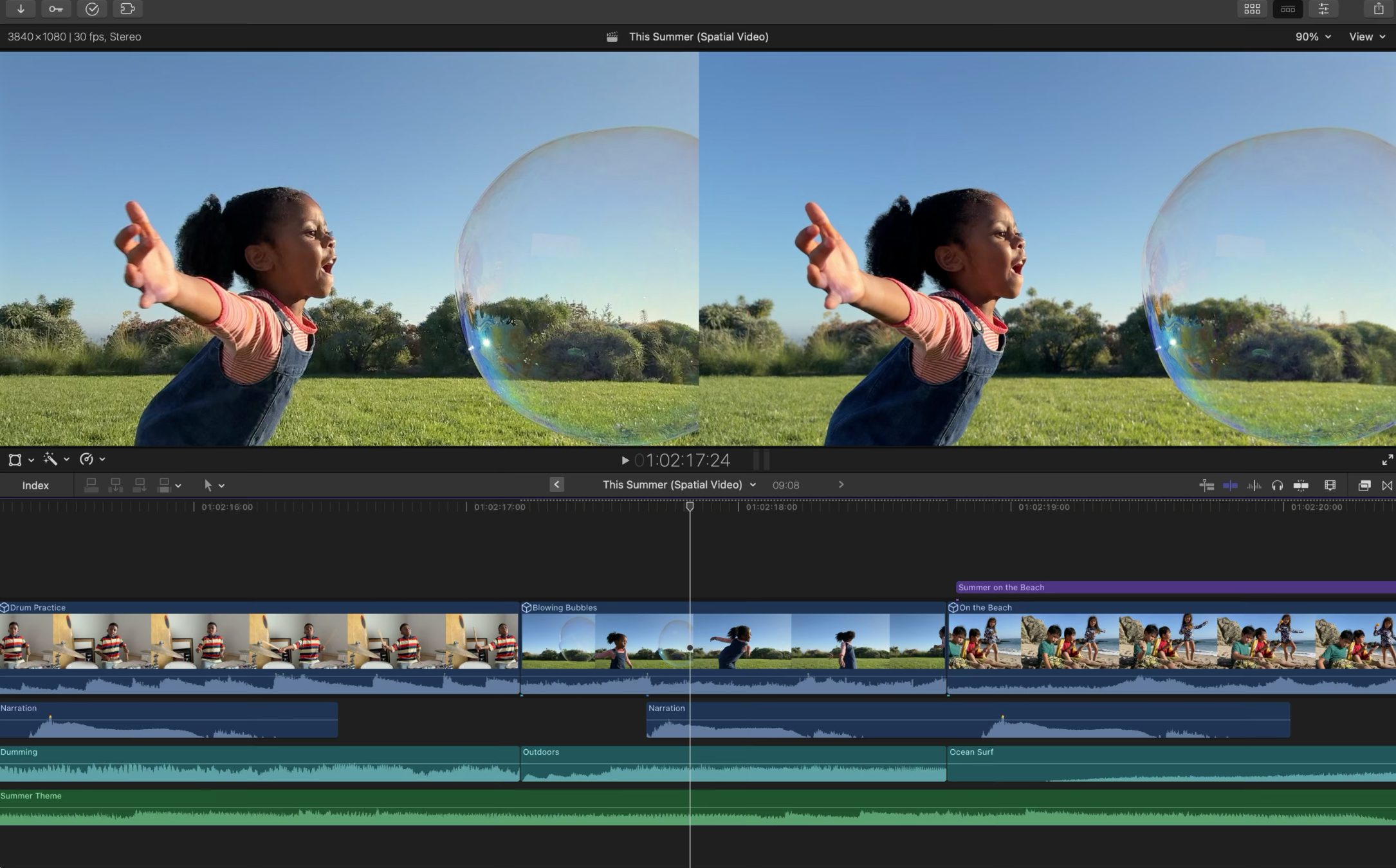 协作剪辑:与Compressor、Motion深度集成,团队项目可拆分时间线区块。