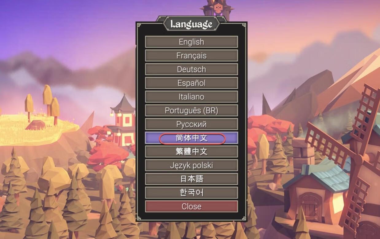 打开游戏后点击【Options】-> 点击【English】-> 选择【简体中文】即为中文版!