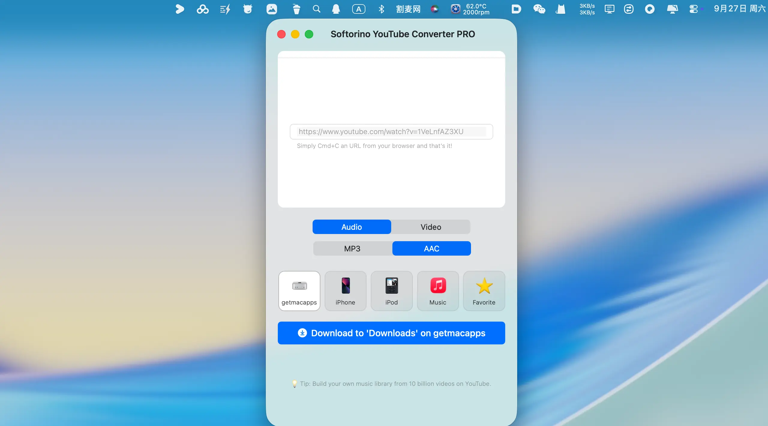 音频格式转换:可将YouTube视频转换为MP3或AAC音频文件,方便您离线收听音乐或播客。 -