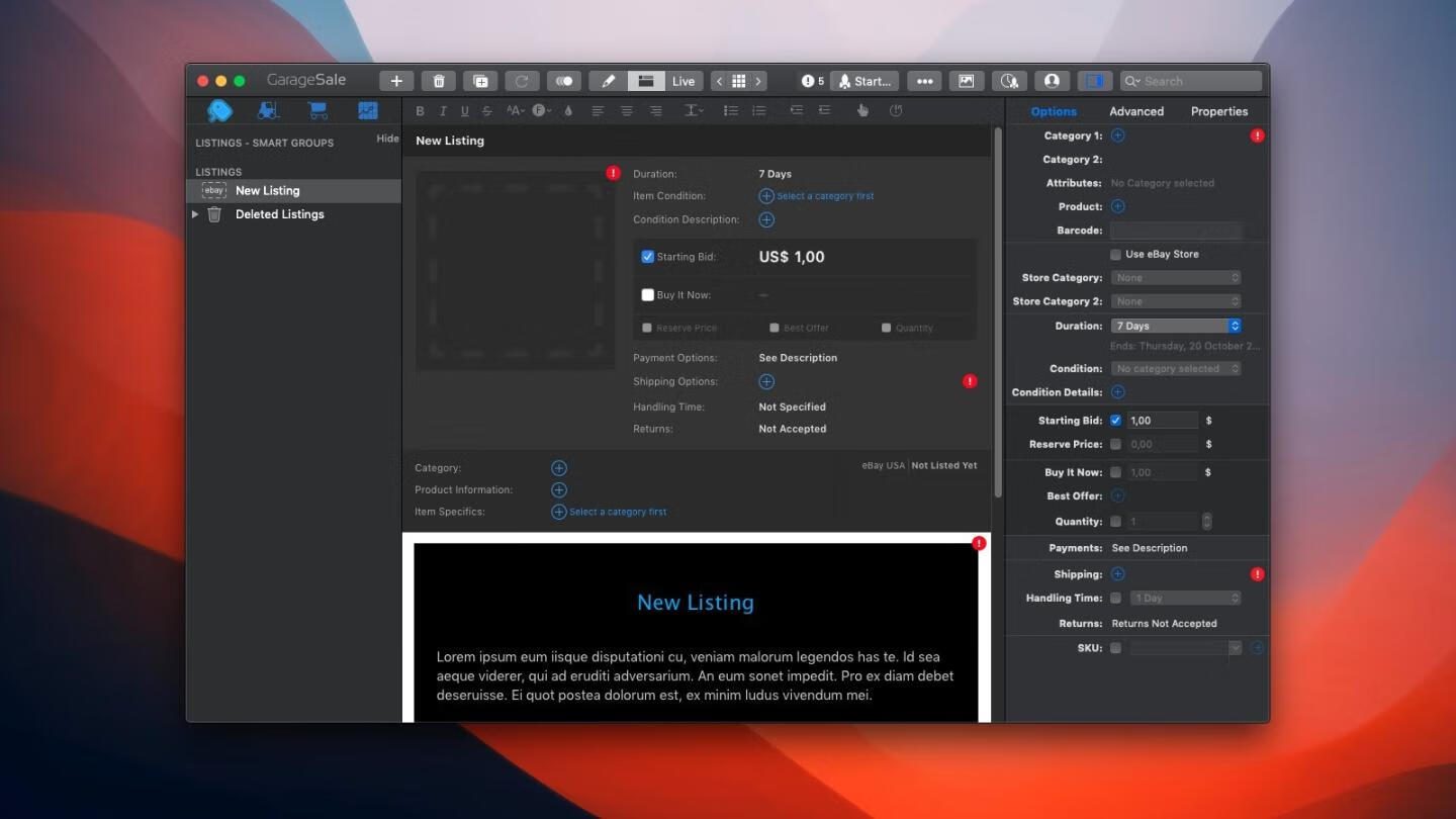 🛒 当繁琐的eBay列表拖垮卖家效率时,GarageSale 以一站式拍卖引擎重塑电商生产力! 这款专业级eBay拍卖管理工具深度整合列表创建、库存追踪、多账户运营功能,通过150+移动端优化模板与智能错误预检系统,将商品上架时间压缩至传统操作的1/5。💡 独创的批量编辑技术支持千件商品SKU同步更新,配合免费图片托管与FTP传输,为跨境卖家节省30%运营成本!