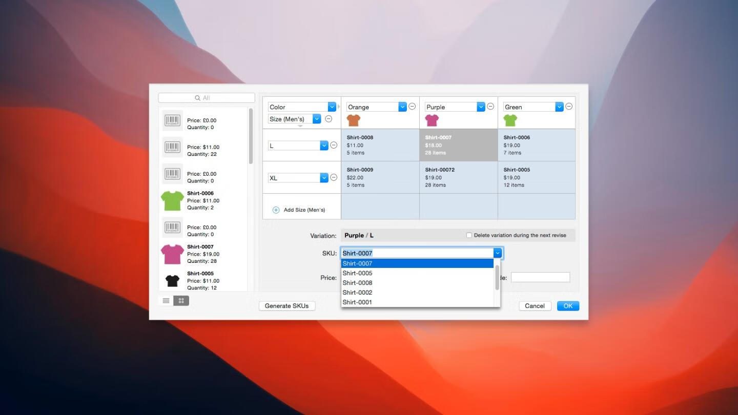 📦 全链路库存管理:SKU条形码绑定+变体联动(颜色/尺寸),售出商品数量自动扣减 -