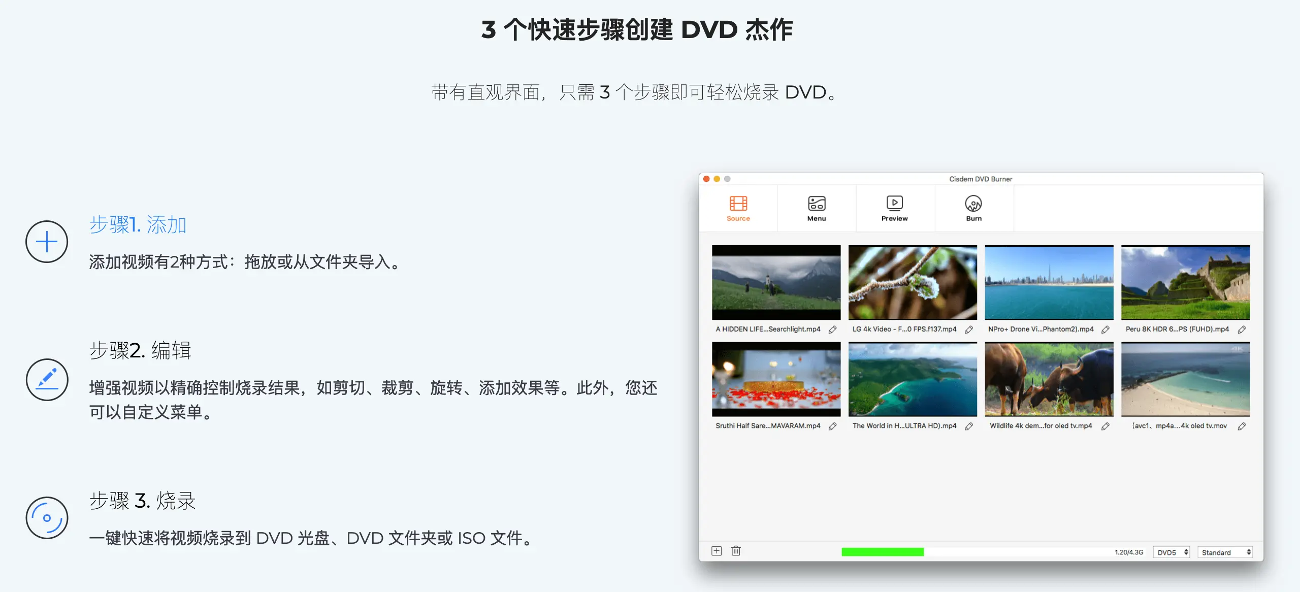 Cisdem DVD Burner非常适合需要整理备份视频资料的家庭用户、需要为客户制作演示光盘的小型工作室,以及所有希望将数字视频转换为实体DVD的Mac用户。这款Mac光盘刻录软件让视频存档变得简单可靠,是制作专业DVD的得力助手。