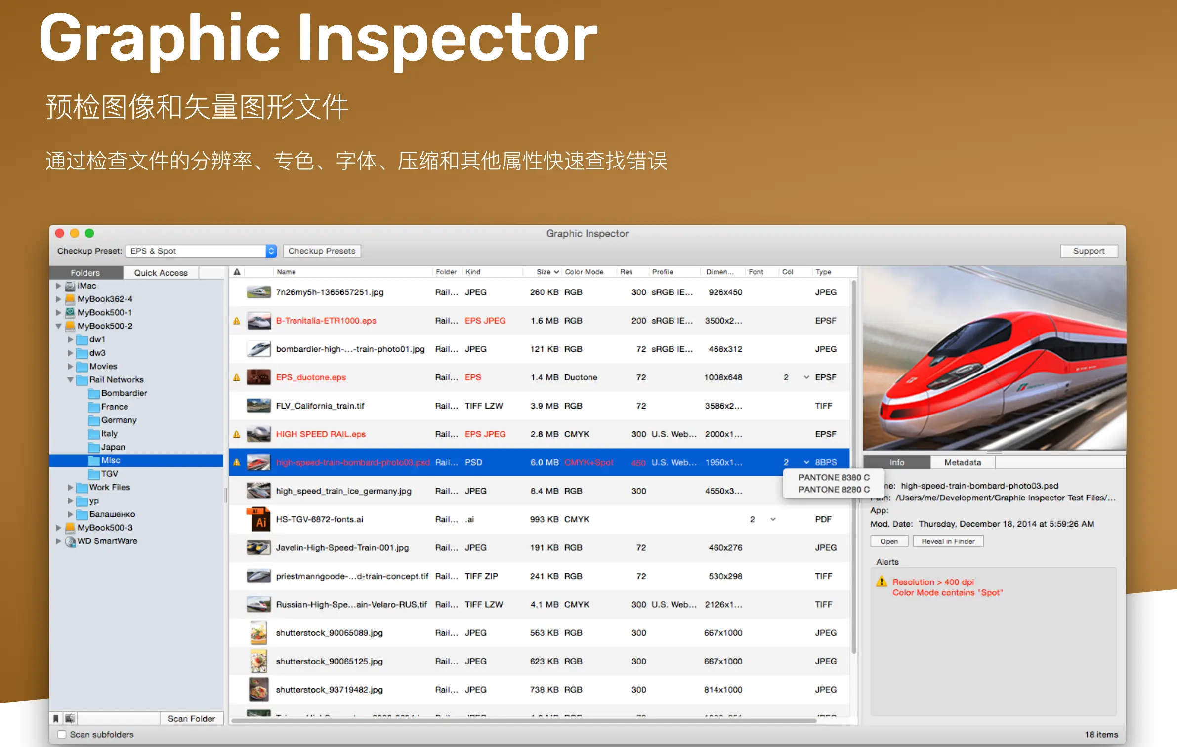 Graphic Inspector 是平面设计师、印前操作员、摄影师以及网页设计师的理想助手。无论是用于确保印刷文件的准确性、统一管理设计项目中的图片资源,还是进行日常的素材库维护,这款Mac图形检查工具都能提供专业级的支持。