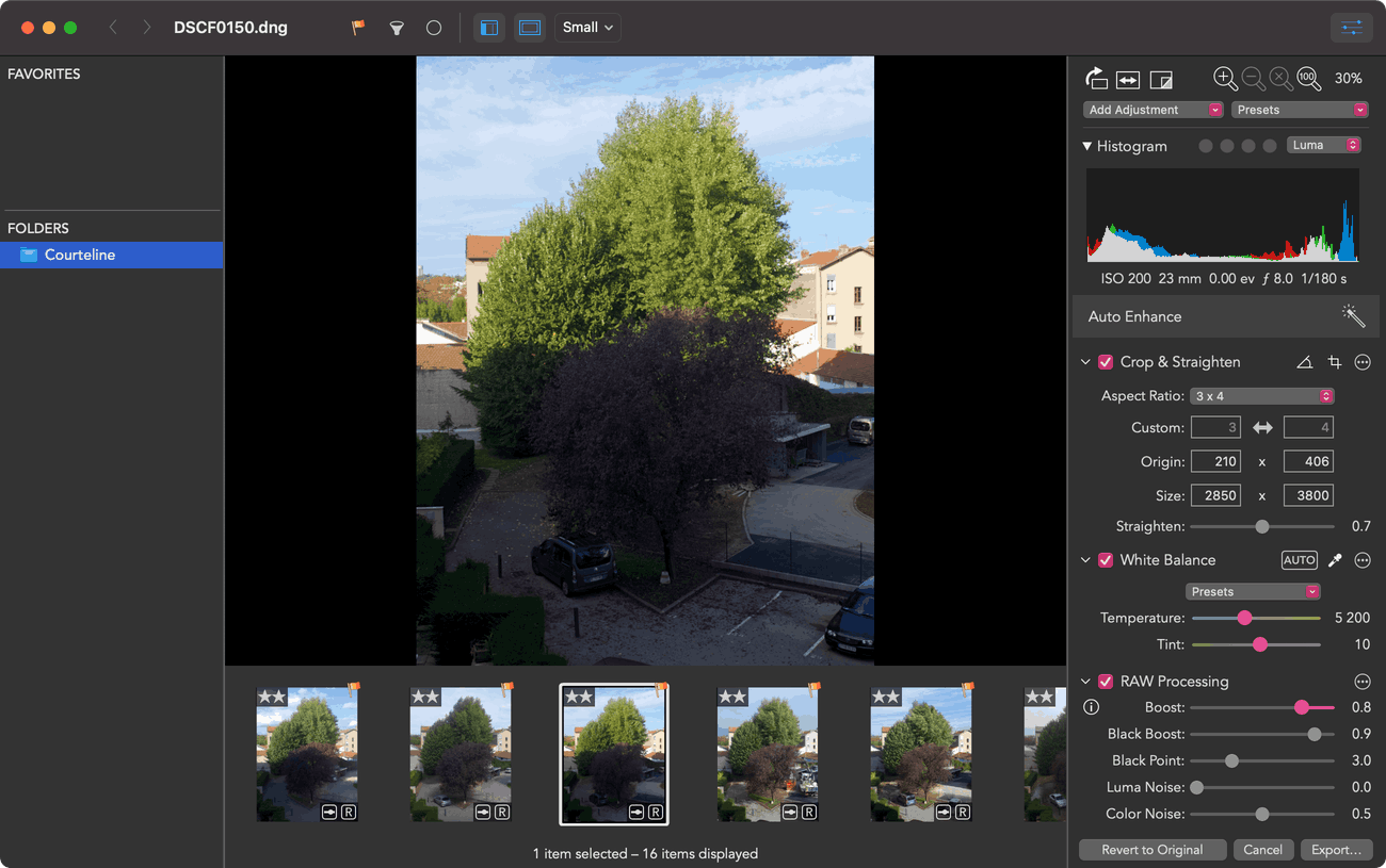 - 批处理:应用预设,粘贴调整并导出图像。一次对许多图像应用自动增强或自动白平衡。