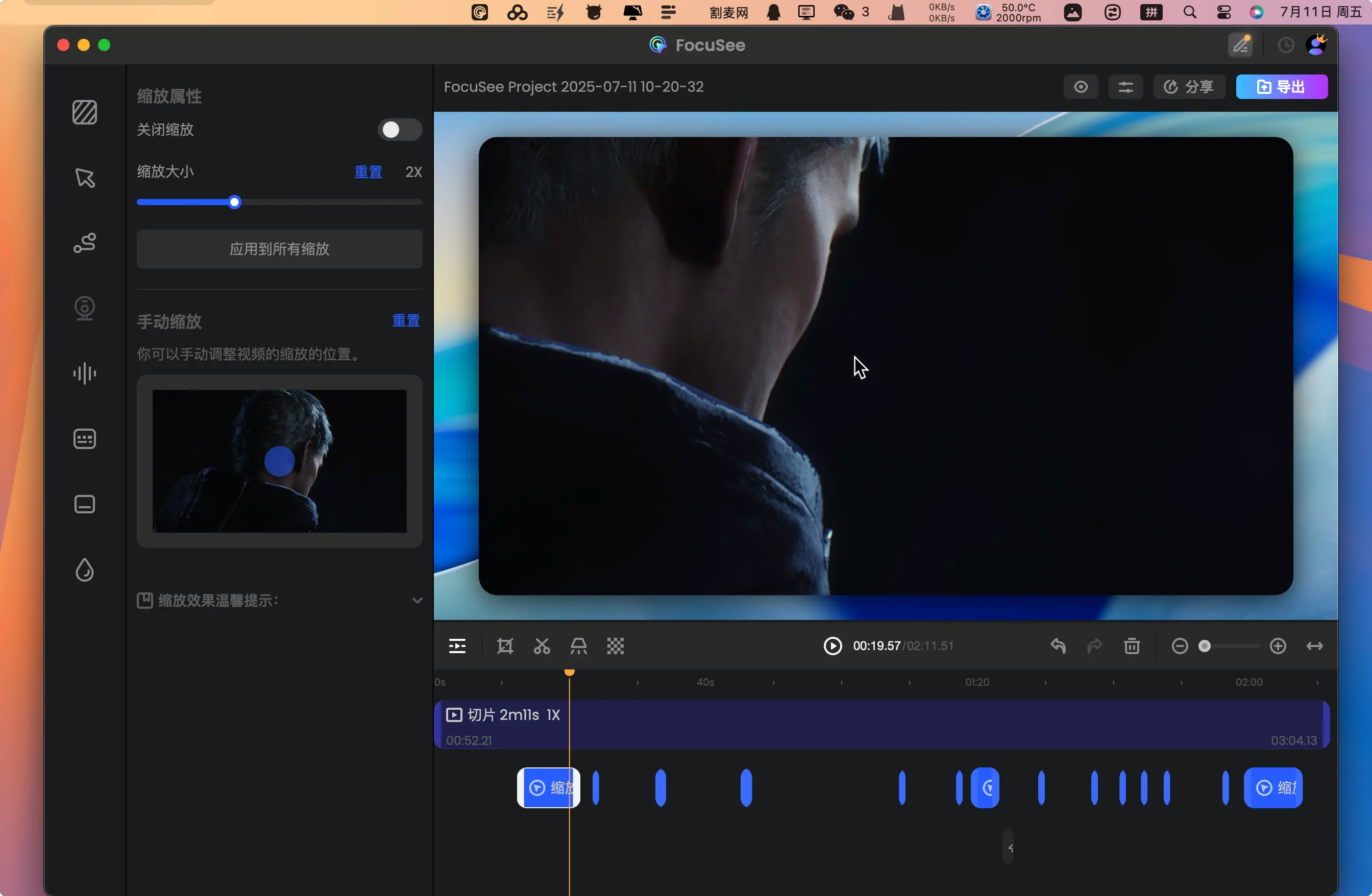 添加放大效果:您可以通过添加放大效果来增强视频,指导观众注意特定区域。您可以手动指定放大位置,也可以让应用程序默认自动放大。