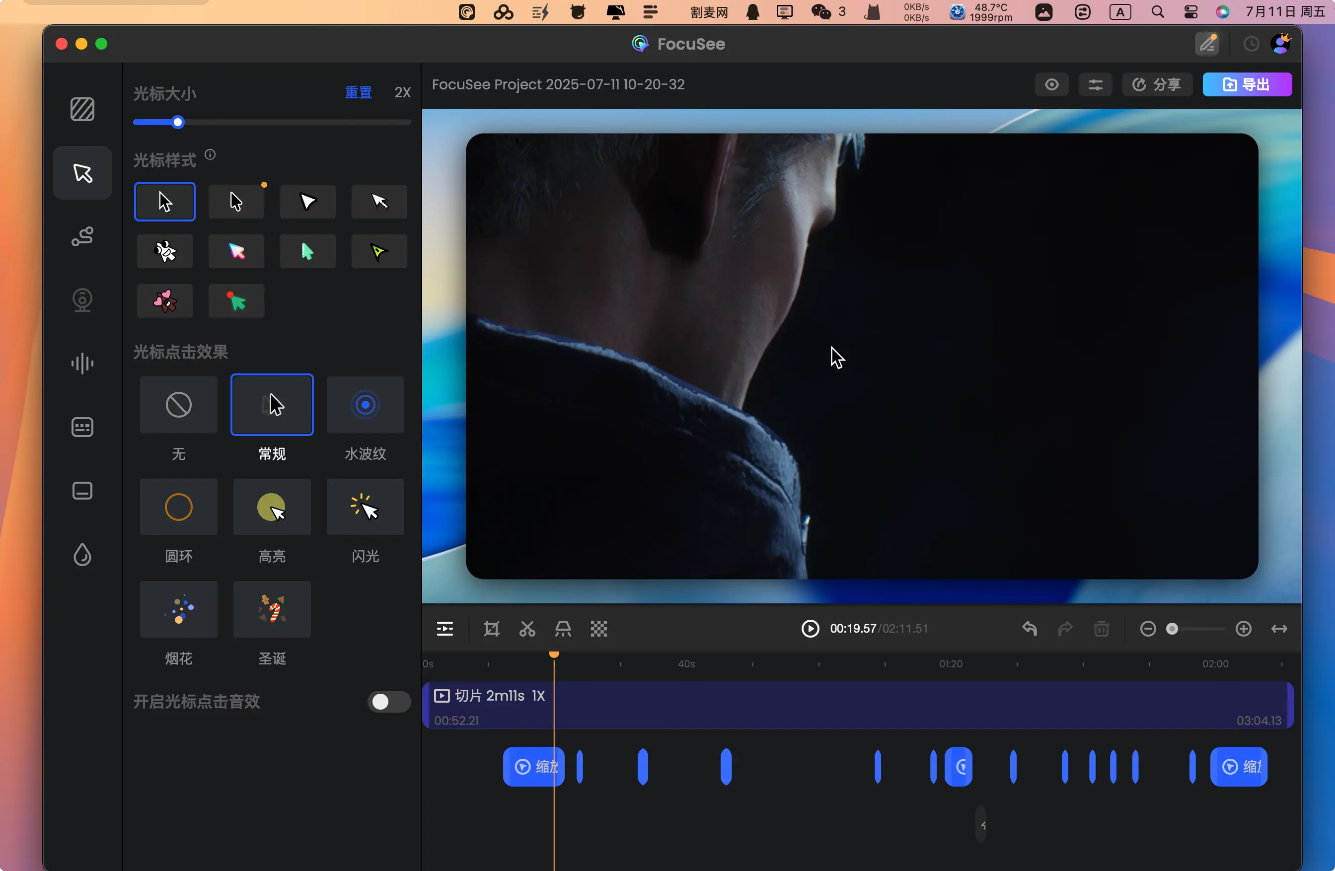 作为Mac自动聚焦录屏工具的标杆,FocuSee的AI运镜技术让视频制作耗时缩减至传统方法的1/5。实测显示:制作3分钟的产品演示视频,从录制到导出仅需6分半钟(含添加7处智能标注)。这款AI驱动录屏软件正在重新定义行业标准——现在开启录制,让每一帧画面都精准传递产品价值!