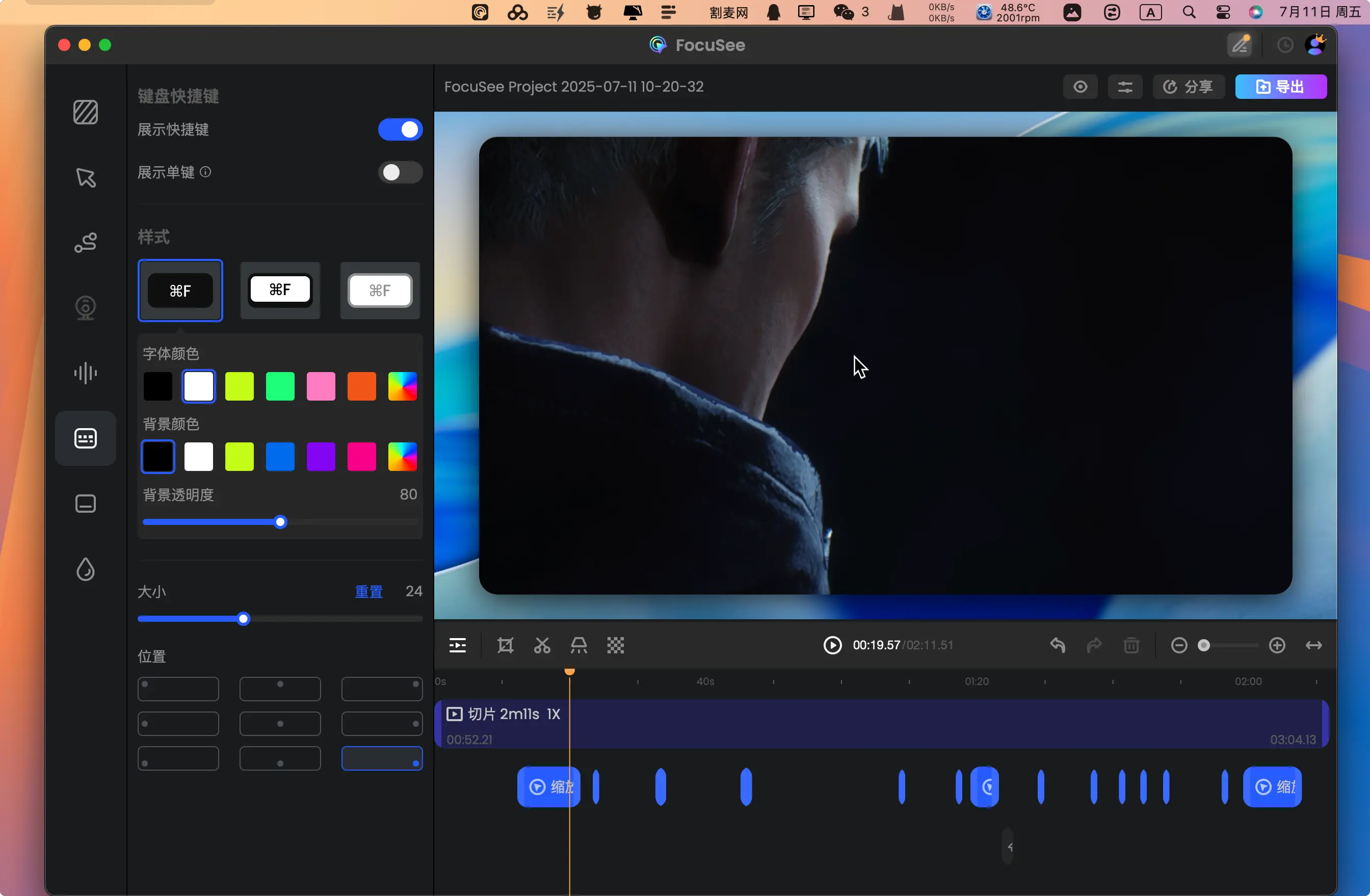 添加自动字幕:自动生成视频字幕,并且可以手动调整字幕。
