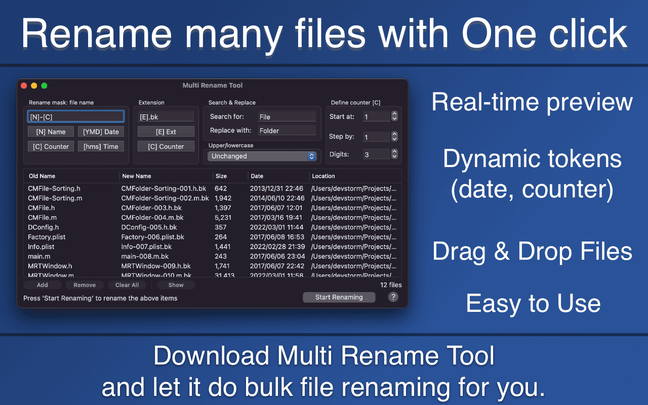 Multi Rename Tool 是一款专为 macOS 设计的专业级批量文件重命名工具,能够帮助用户快速、精准地处理数千个本地与远程文件🔄。它通过强大的规则组合与实时预览功能,将繁琐的重命名工作转化为一键式自动化操作,彻底解放生产力,是文件管理的效率利器✨。