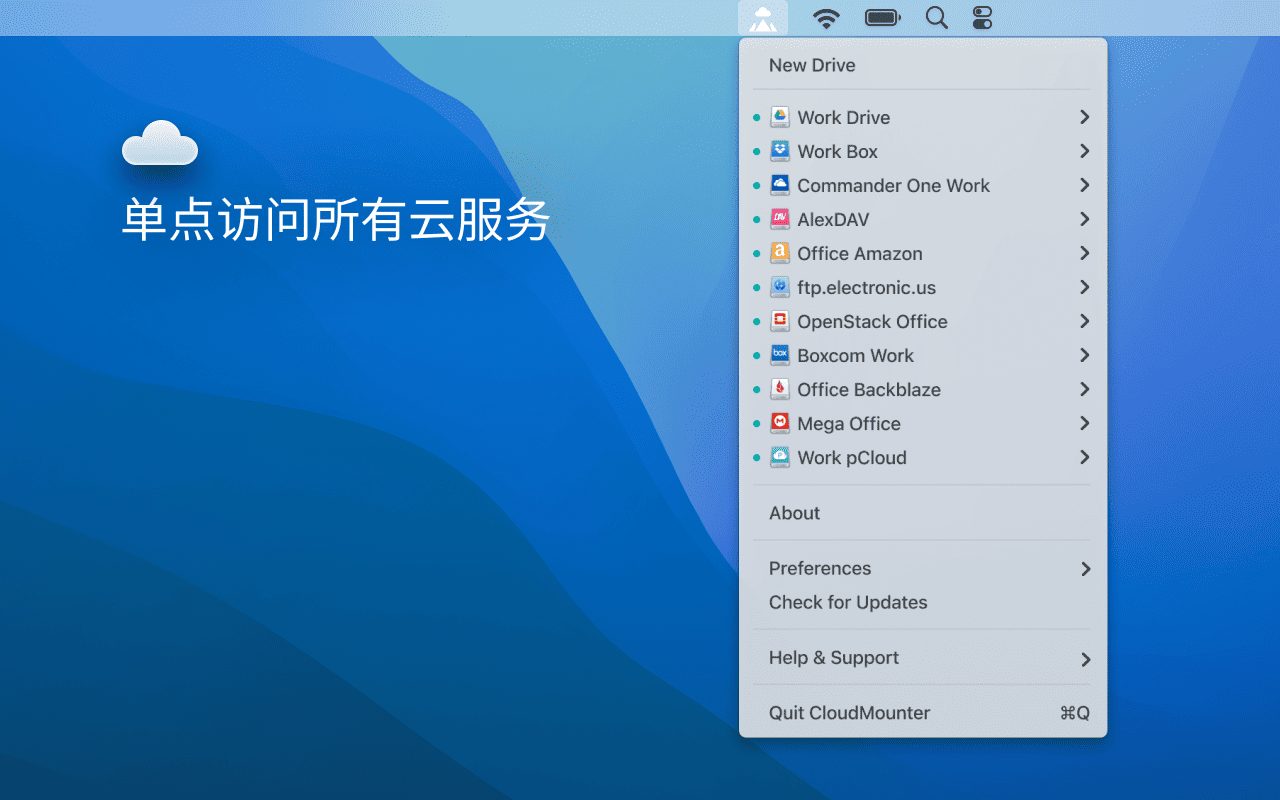 CloudMounter 是一款创新的云盘本地挂载与管理工具,能够将各类云存储服务直接映射为Mac本地磁盘🌐。它支持Google Drive、Dropbox、OneDrive、Amazon S3等主流云服务,通过强大的加密技术和直观的Finder集成,让您像操作本地文件一样安全便捷地管理云端数据,彻底告别同步文件夹的存储限制与繁琐操作✨。