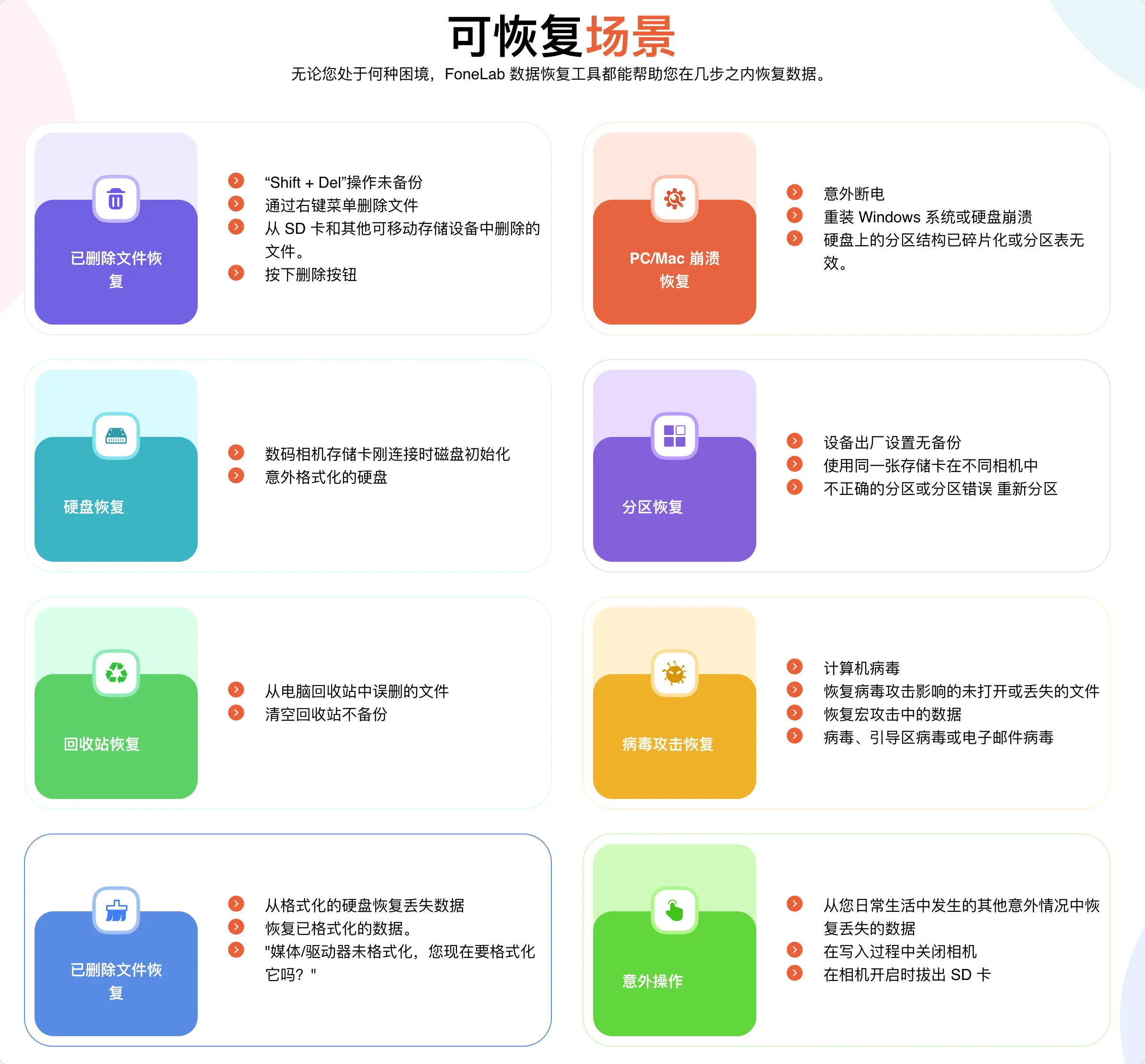 🔄 先进扫描技术:采用深度扫描与快速扫描双模式算法,能深入搜索存储设备的每个扇区,精准定位文件碎片并重建数据。 -