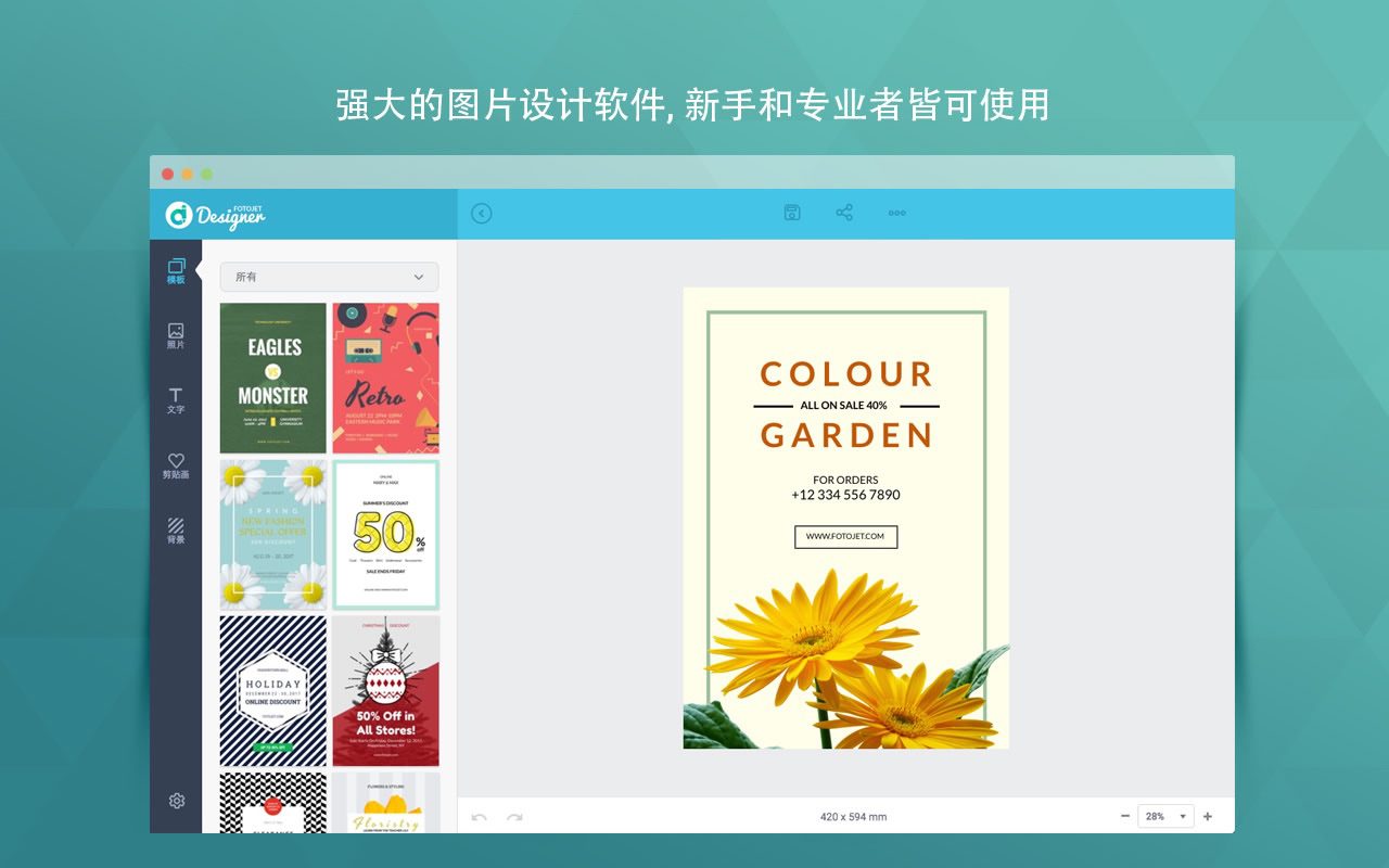 在Mac上需要快速制作精美的海报、社交媒体图片或邀请函?FotoJet Designer让这一切变得简单高效!🎨 这款图形设计软件拥有900+专业模板和丰富的设计资源,无需任何专业技能,即可通过拖拽操作快速生成各类视觉设计,助您轻松展现创意魅力。