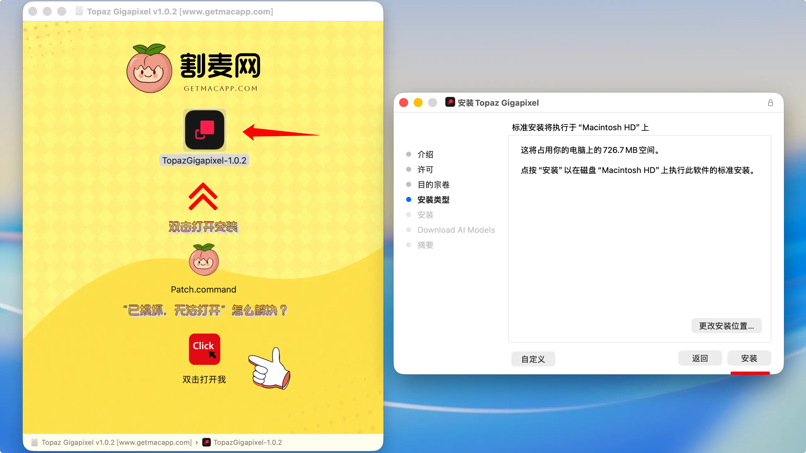 1.打开镜像包,双击TopazGigapixel-1.0.2根据安装器提示完成安装即可(需联网下载模型,耐心等待即可)