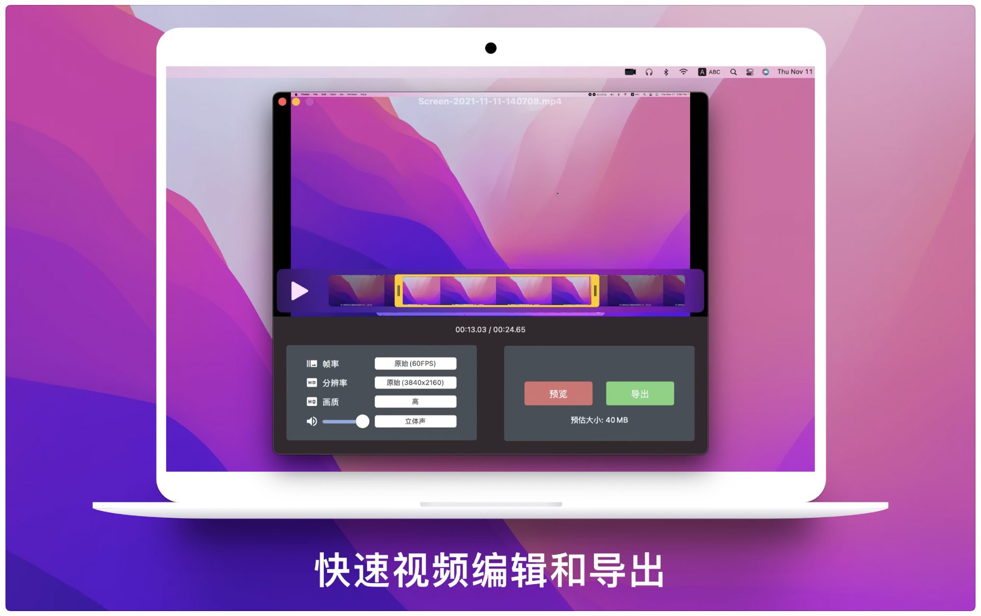 超清输出引擎:支持15-60FPS帧率及720P/1080P/4K分辨率,一键导出剪辑软件友好型MP4文件