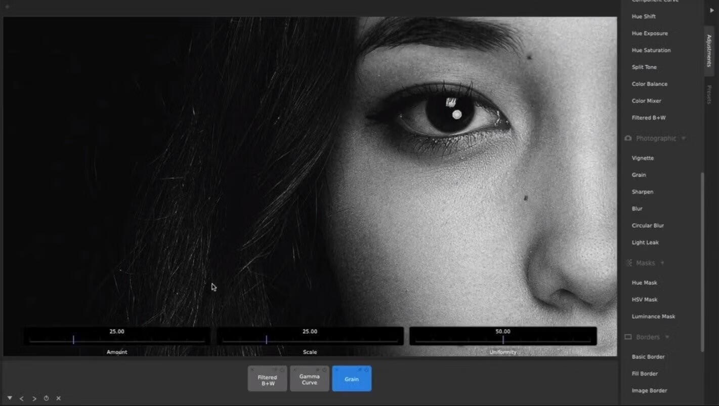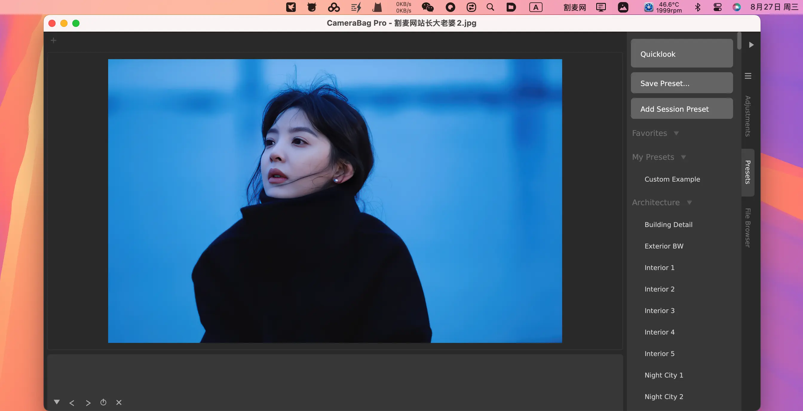 📸 人像精修调色:使用人像专用预设快速美化肤色,结合局部调整工具精准优化面部光影 -