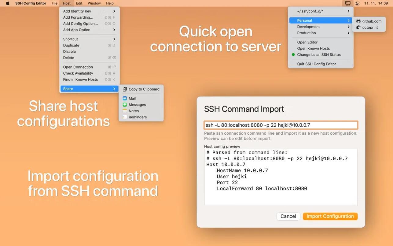 ~/.ssh/config文件手动编辑易出错、难维护的痛点✨。无论是管理百台服务器集群还是调试远程数据库,皆能点击即配置,让Mac成为运维效率核武器🛡️。