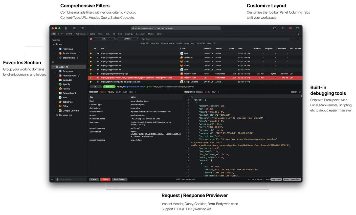 Proxyman 是一个方便的工具,可帮助您调试来自应用程序、域、远程设备和 iOS 模拟器的 HTTps 请求。