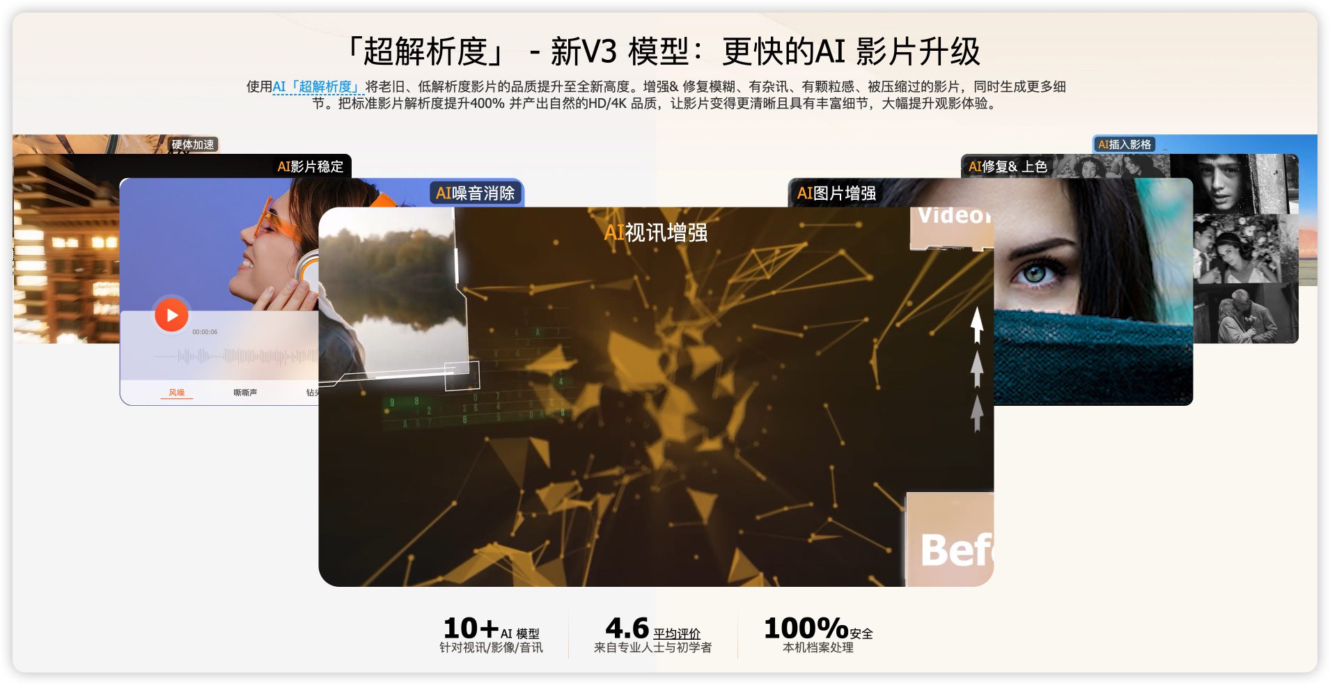 4K航拍素材→AI降噪+裁剪黑边→压缩为HEVC上传平台(节省90%上传时间)