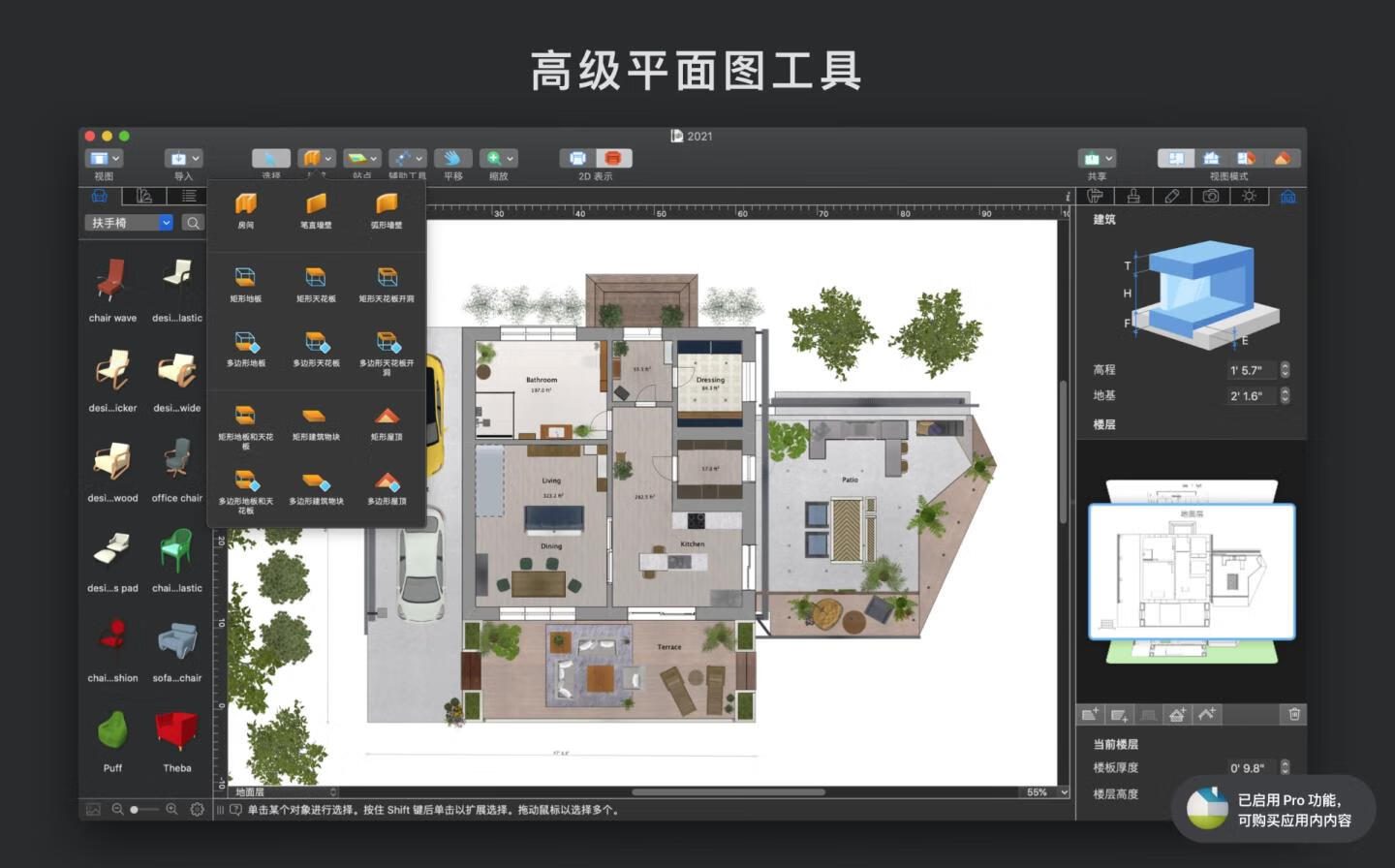 ✨ Live Home 3D Pro 是Mac平台的专业级家居与建筑可视化设计工具,在保留标准版直观操作的同时,解锁了更强大的建模能力和输出选项。它既能轻松规划普通家装布局,也支持复杂商业建筑项目——小到调整门窗位置,大到设计摩天大楼结构,一站式满足从2D草图到3D沉浸式预览的全流程需求,让每位用户都能成为空间设计师。
