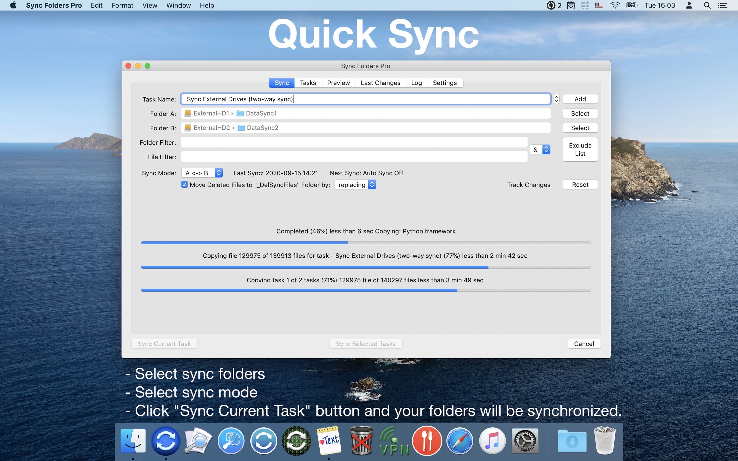 在Mac上进行多设备文件同步时,Sync Folders Pro正是您需要的专业级解决方案!🔄 这款强大的数据同步软件能够无缝同步本地文件夹、USB驱动器、网络存储及云服务,建立统一的文件管理生态。无论是手动触发还是按计划自动执行,它都能确保您的数据在多个位置间保持实时一致,堪称数字时代的智能文件管家。
