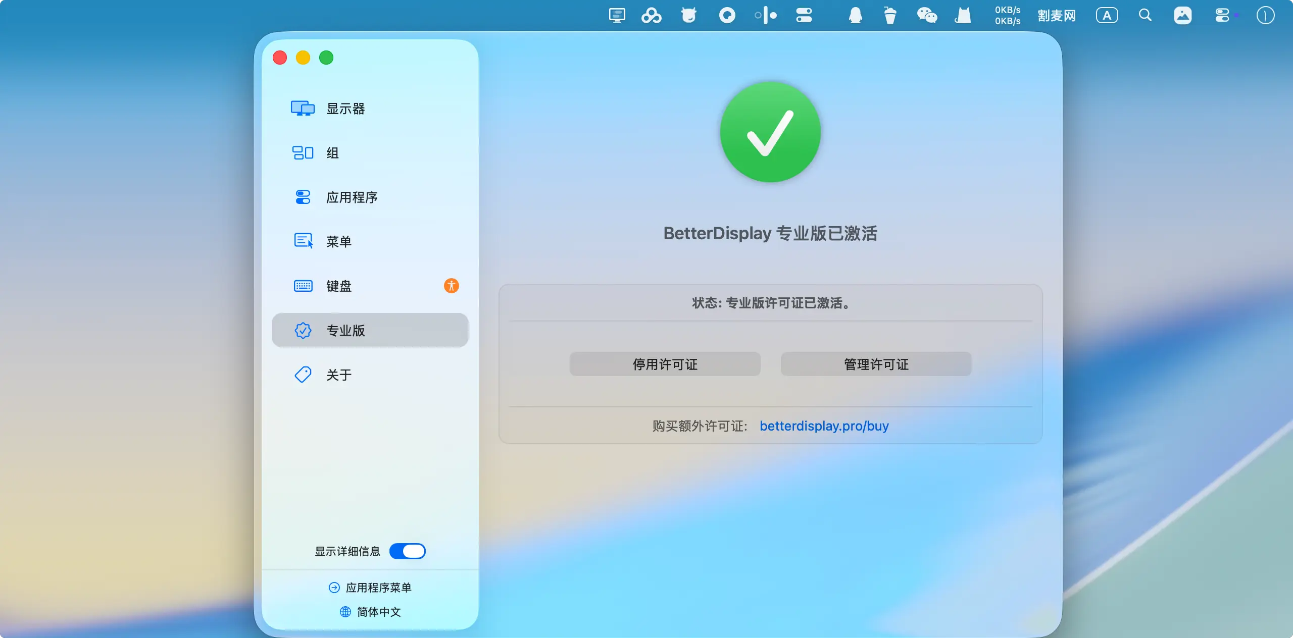 在众多Mac显示优化工具中,BetterDisplay Pro凭借其「专业级色彩管理×智能化显示增强」 的双重优势脱颖而出。它不仅提供了精准的色彩校准功能,更通过一键HIDPI、虚拟显示器等创新特性,为专业设计师和普通用户带来了前所未有的视觉体验优化方案,让每一块屏幕都能发挥出最佳显示效果。🎯