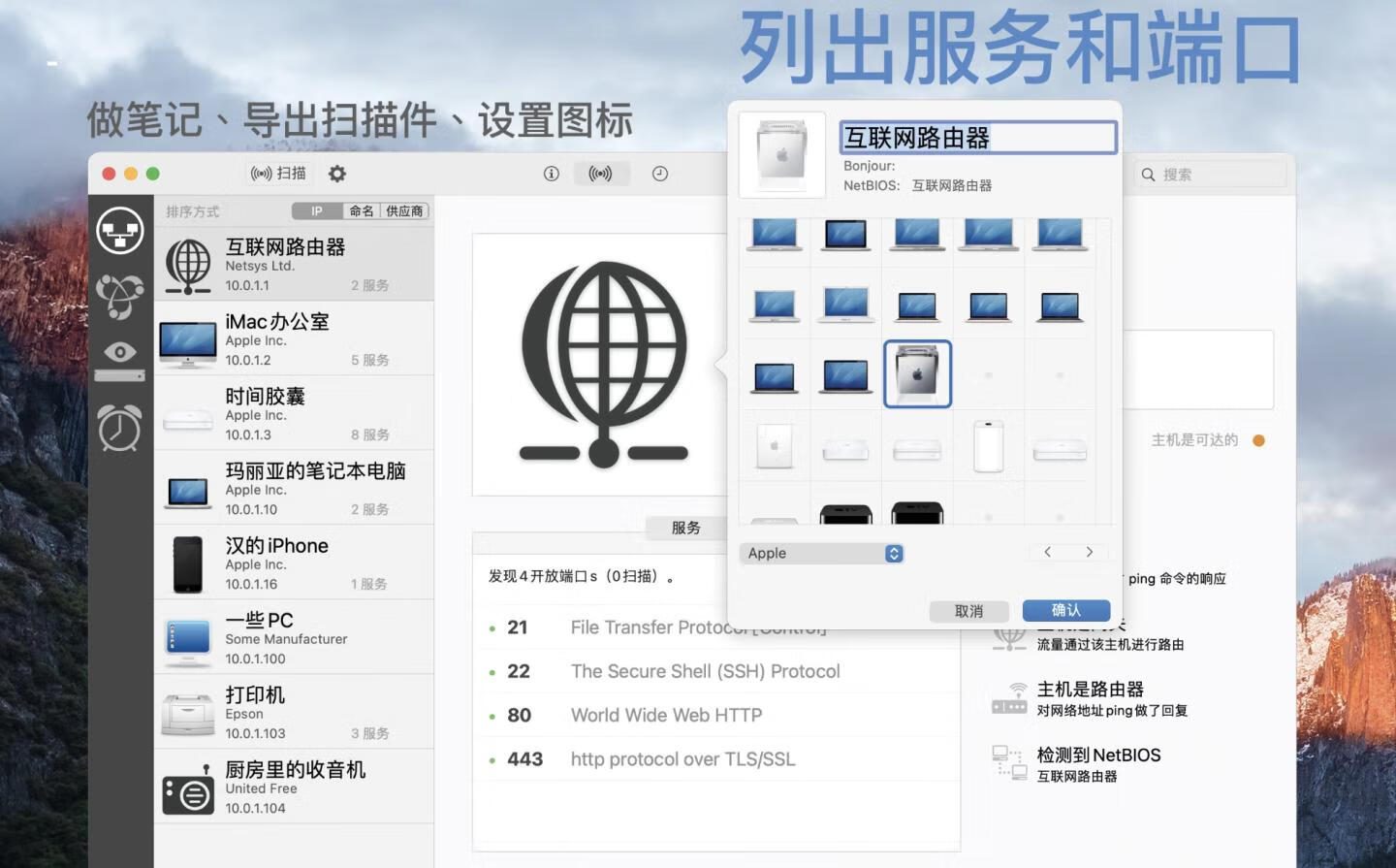 📱 智能设备识别:自动识别路由器、计算机、打印机、移动设备等网络设备,并显示详细配置信息 -