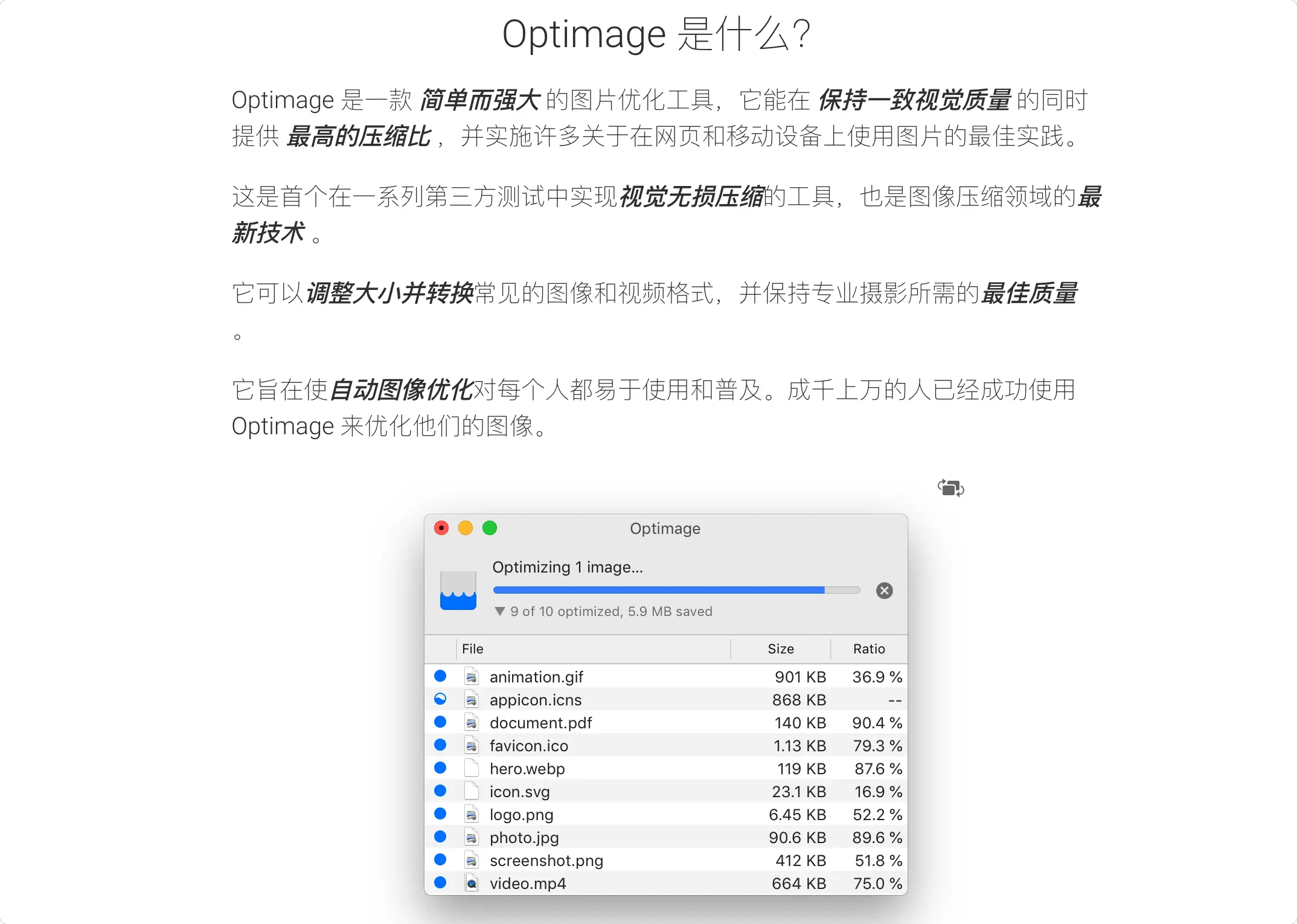 在 macOS 系统上,大量图像文件不仅占用宝贵的磁盘空间,还可能影响网站加载速度和应用程序性能。Optimage 作为一款专为 Mac 设计的图像无损压缩工具,能够有效解决这一问题,它通过先进的算法在不损失视觉质量的前提下,显著减小图片文件尺寸。