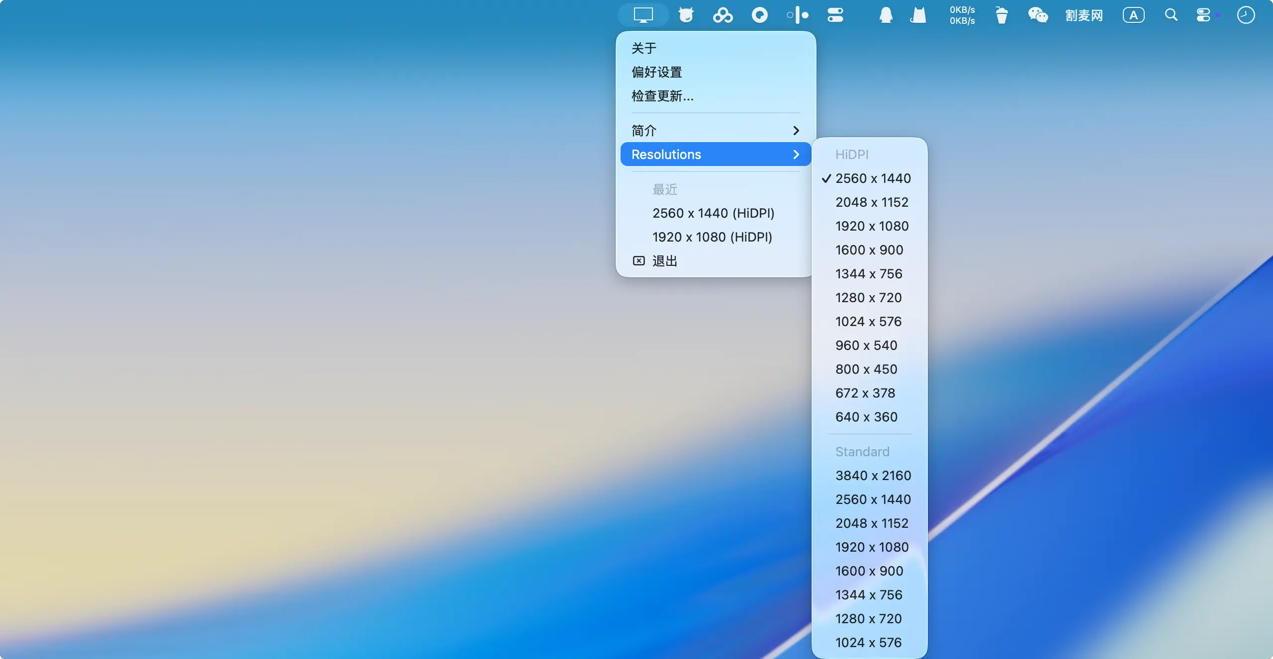 🚀 一键快速切换:直接从菜单栏一键切换所有可用分辨率,告别繁琐的系统设置 -