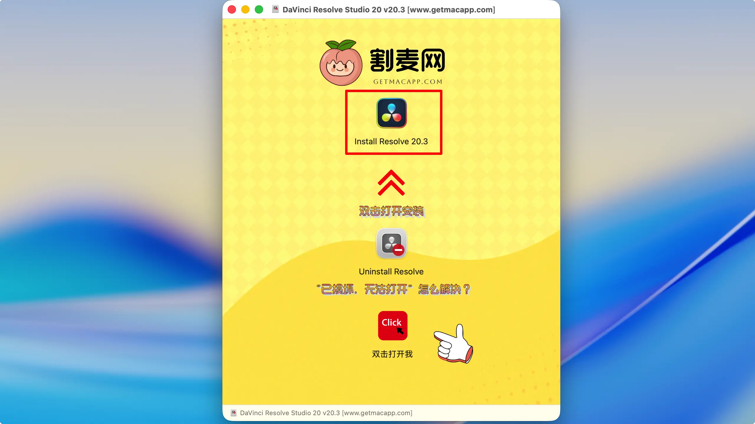 1.下载完成后打开镜像包,双击Install Resolve 20.3进行安装,根据安装引导即可完成激活